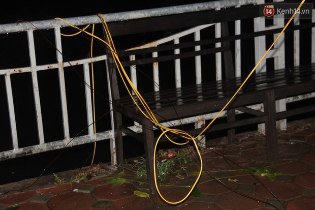 Do một số cây xanh được người dân giăng dây điện trên thân cây nên khi cây bị đổ, dây điện cũng bị kéo xuống vỉa hè khiến nhiều người dân không dám lại gần.
