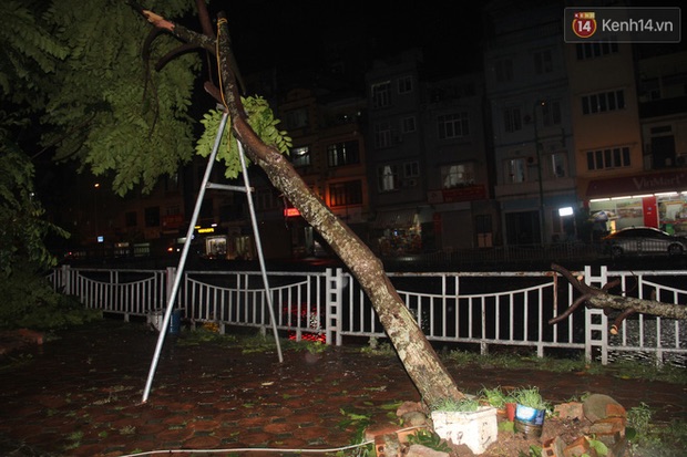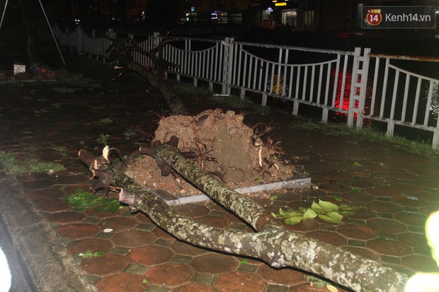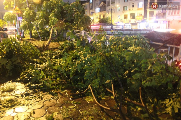 Nhiều cây xanh đã bị đổ từ chiều 3/8, tuy nhiên đến tối cùng ngày mưa lớn cùng gió mạnh tiếp tục diễn ra trên khu vực khiến một số cây tiếp tục đổ.