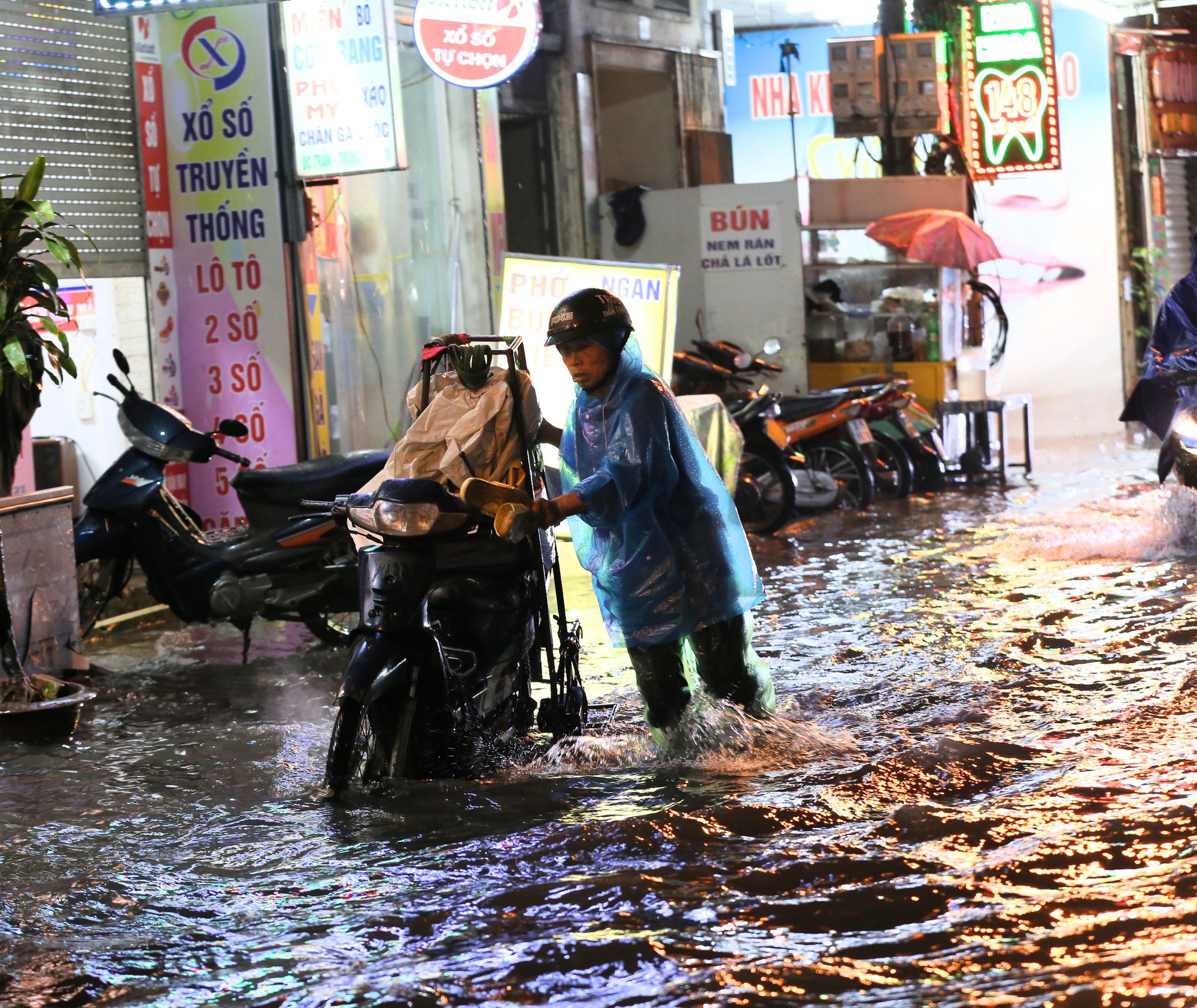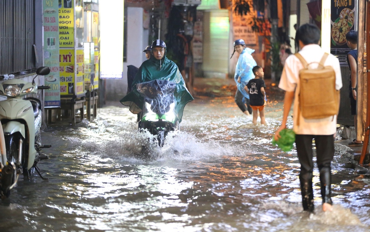 22/09/2024 15:03Mưa lớn tối cuối tuần khiến nhiều tuyến phố Hà Nội ngập sâu, người dân chật vật dắt xe chết máy