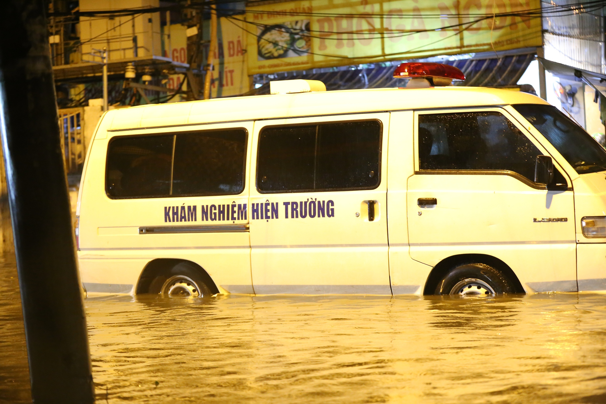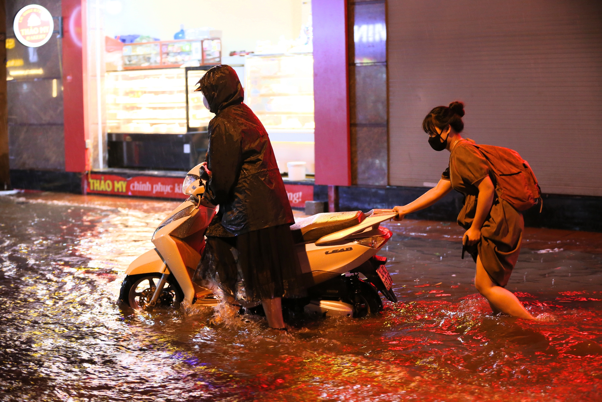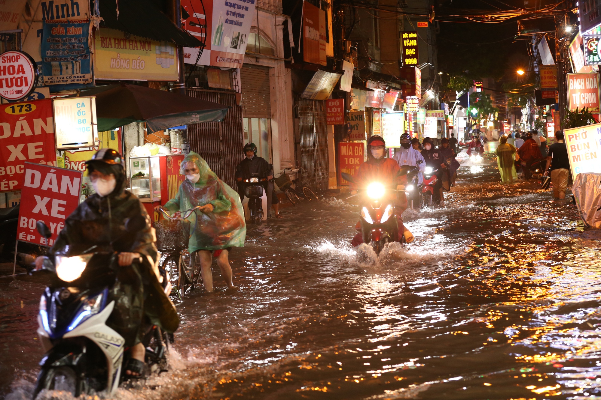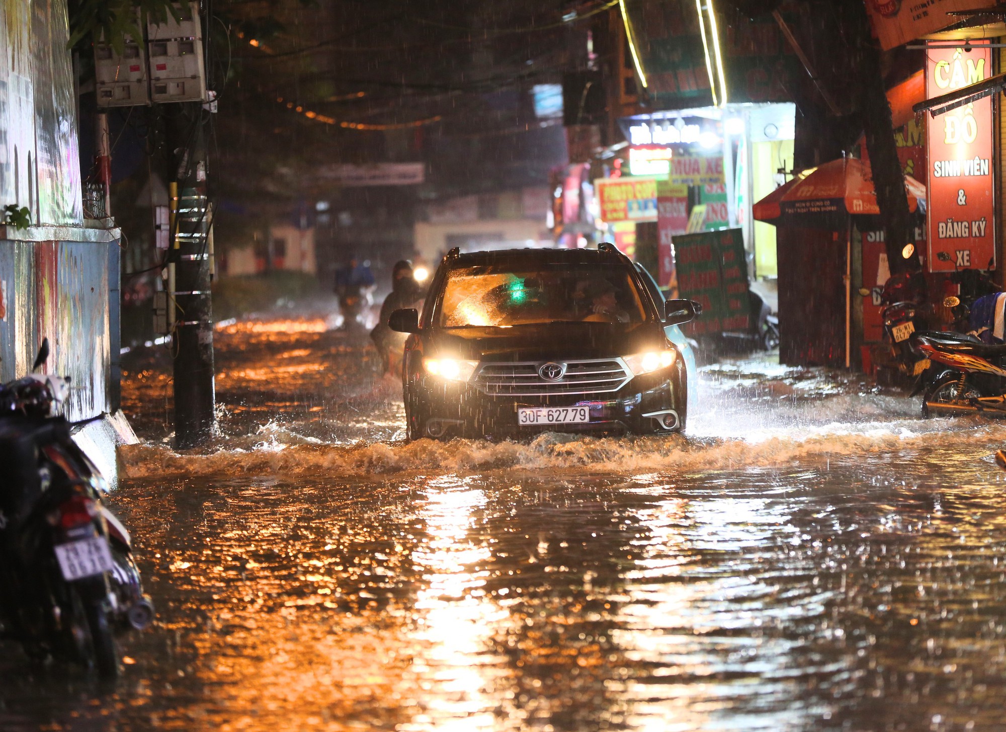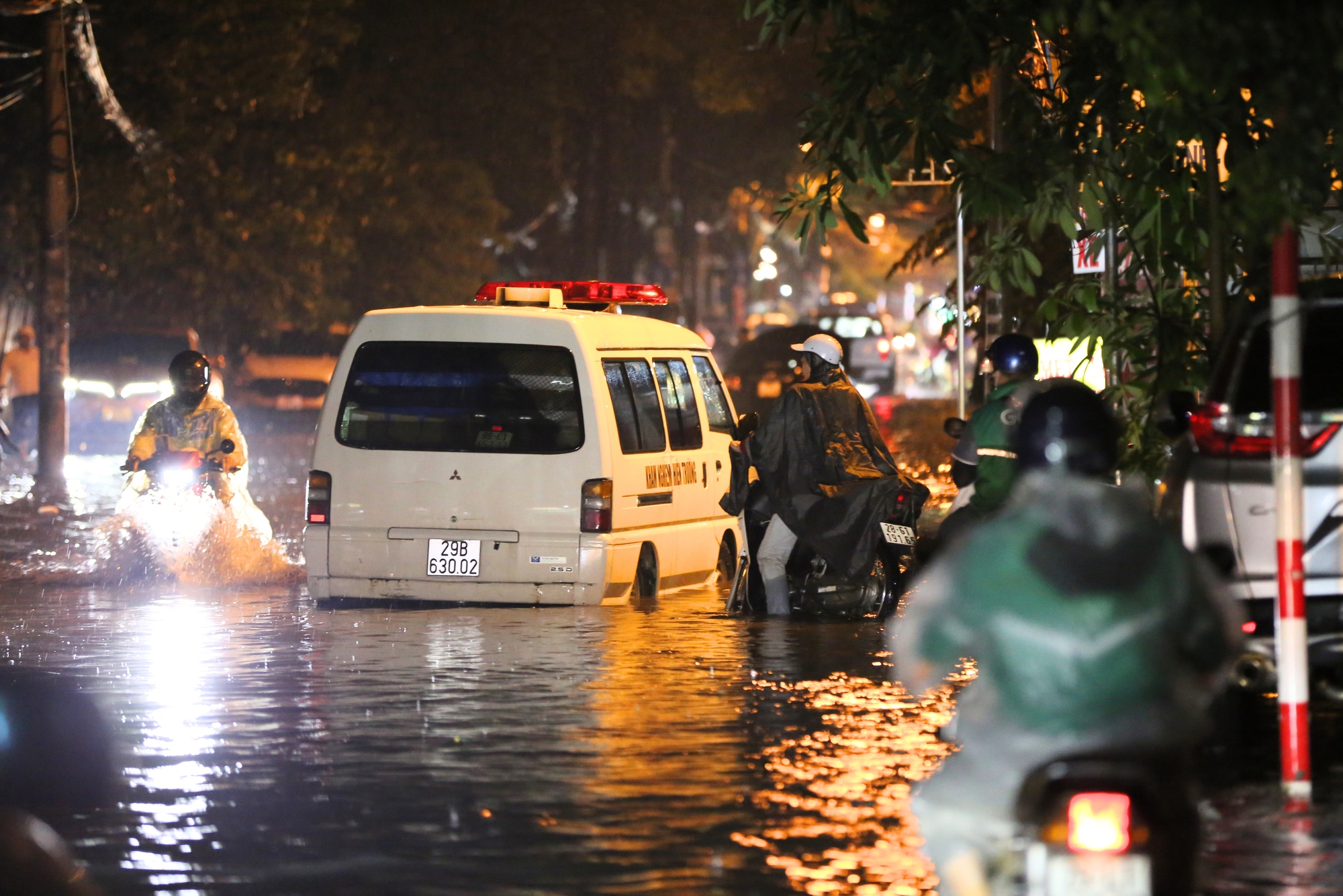 Sau cơn mưa lớn kéo dài vào tối ngày 21/9, nhiều tuyến phố nội thành Hà Nội bị ngập sâu, hàng loạt xe bị chết máy khi di chuyển qua đây.