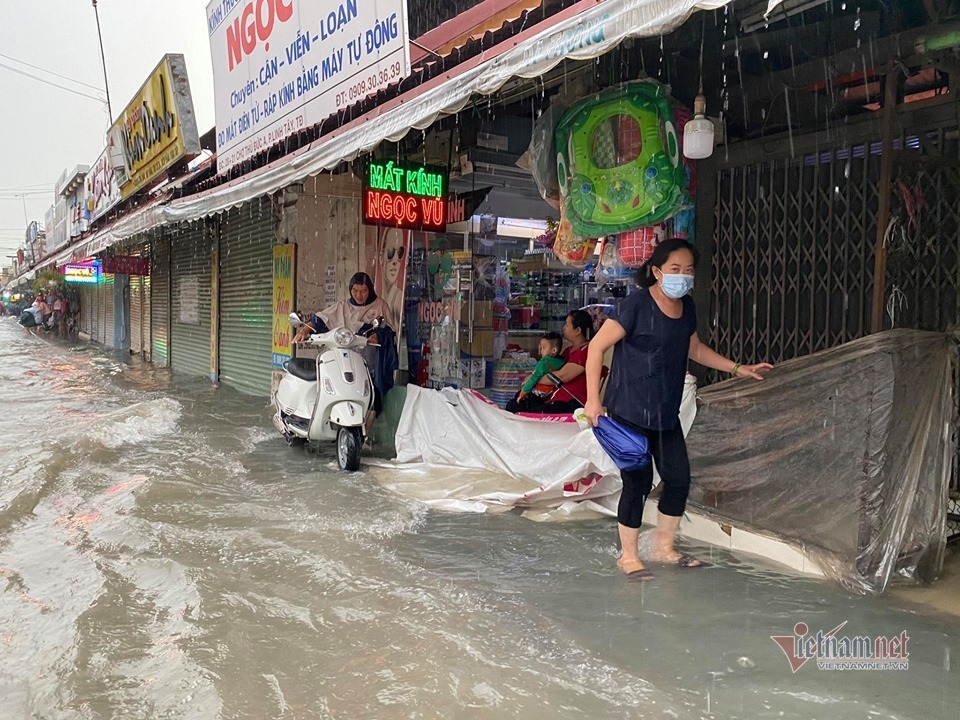 Đặc biệt, chợ Thủ Đức bị nước bủa vây. Nước tràn vào bên trong chợ, "tấn công" các ki ốt, gây hư hại tài sản. Các tiểu thương phải vật lộn tìm cách ngăn nước tràn vào sâu.