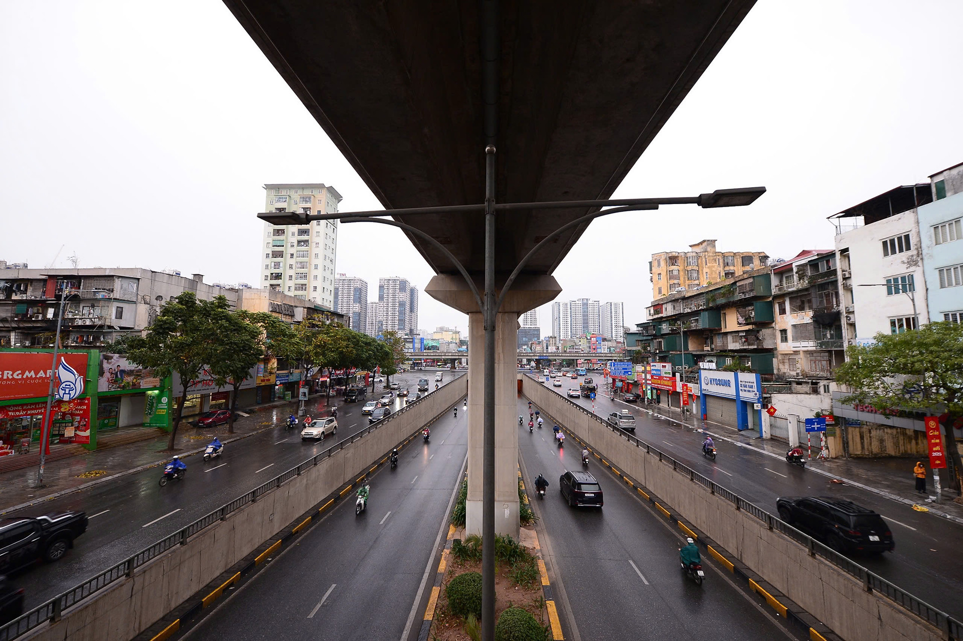 Đường Trần Duy Hưng (đoạn gần hầm chui Đại lộ Thăng Long), không còn hình ảnh hàng dài phương tiện dừng chờ đèn đỏ.