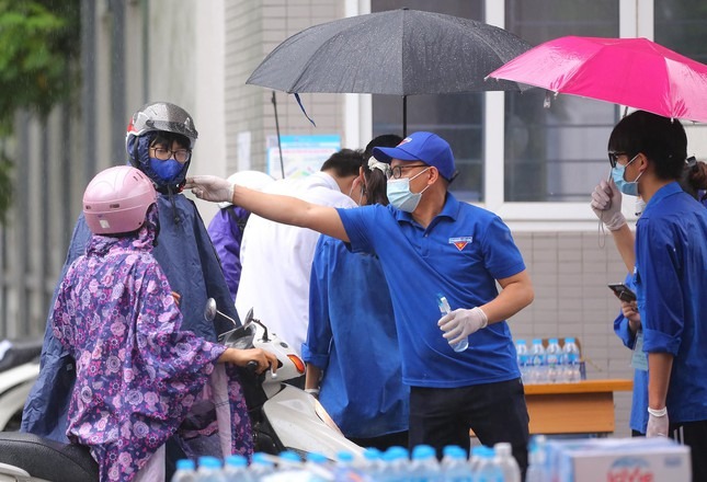 Ngày thi thứ 2 vào lớp 10, Hà Nội tiếp tục mưa tầm tã từ sáng sớm. Mưa trắng trời, dù đã mặc áo mưa, nhưng có khi cả phụ huynh và các con đều vẫn ướt..Phụ huynh ân cần chỉnh lại ô cho các con khỏi ướt khi chuẩn bị vào điểm thi.Bước vào kỳ thi quan trọng nên khó tránh tâm lý hồi hồi hộp và lo lắng. Các phụ huynh đã động viên để tiếp thêm động lực cho con em mình từ những cái ôm thật chặt đến những hành động ân cần nhỏ nhất.Một thí sinh được gia đình đưa đi thi bằng xe ô tô được Thanh niên tình nguyện che chắn thêm ô cho khỏi ướt.Do ảnh hưởng của dịch bệnh COVID-19, lứa học sinh lớp 9 năm nay chịu nhiều thiệt thòi khi phải học online trong 6 tháng. Năm nay, cũng là lần đầu tiên Hà Nội triển khai việc làm thủ tục dự thi theo hình thức online. Việc này để đảm bảo an toàn phòng chống dịch.Cơn mưa lớn sáng nay khiến các thí sinh gặp nhiều khó khăn khi di chuyển đến điểm thi.Tại cổng trường, mưa lớn nên lực lượng thanh niên tình nguyện vừa hỗ chợ che chắn cho thí sinh khỏi ướt vừa làm công tác xịt sát khuẩn cho các bạn trước khi bước vào điểm thi.
