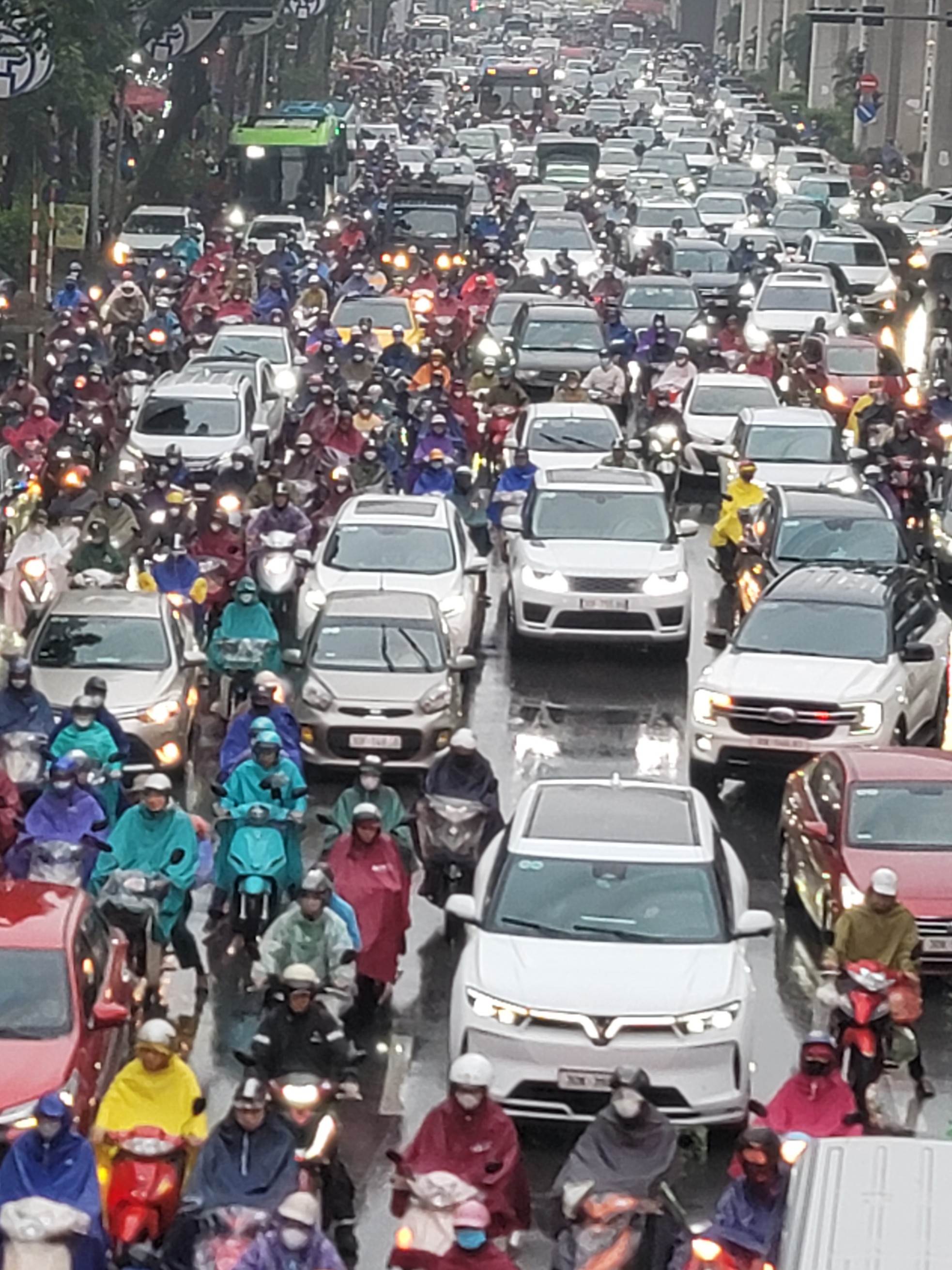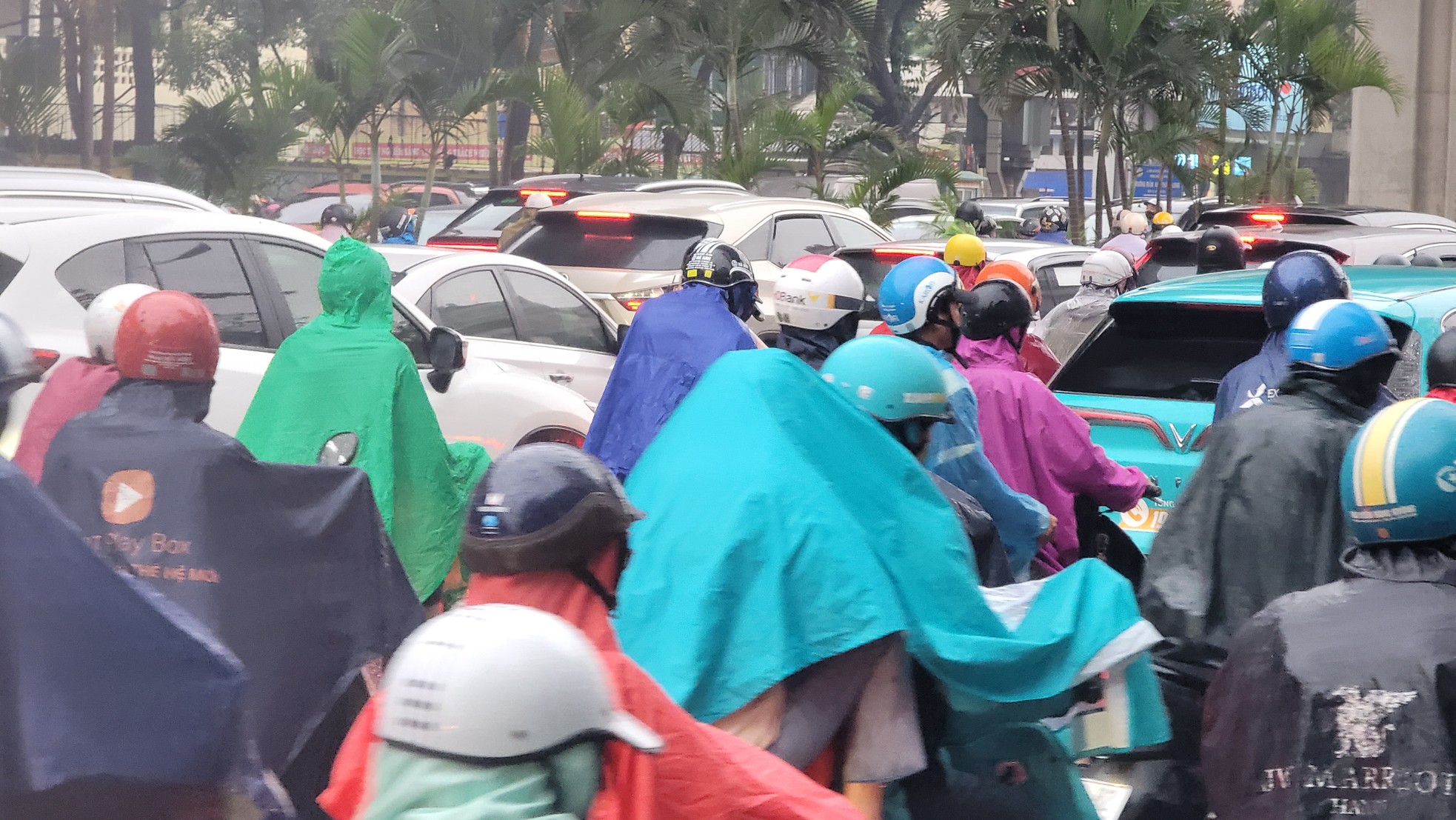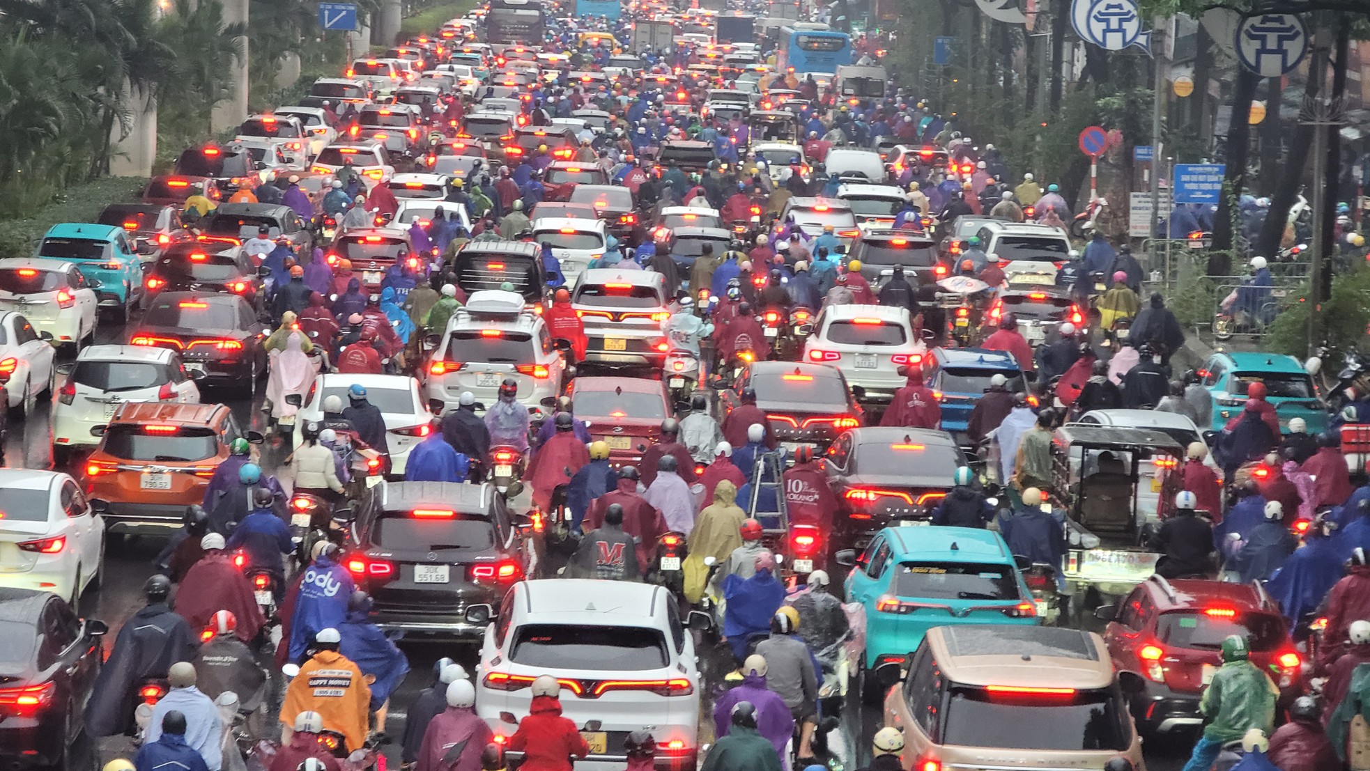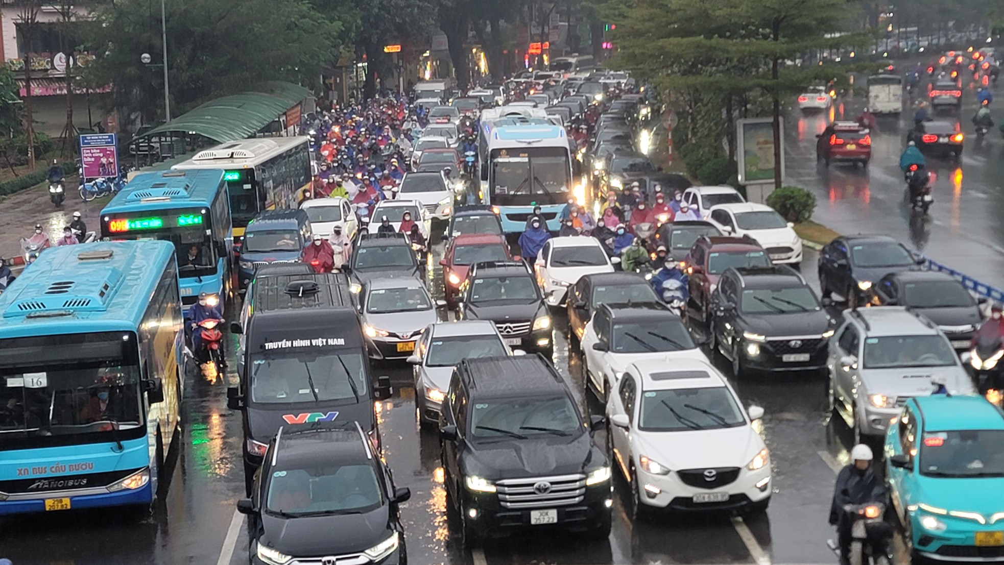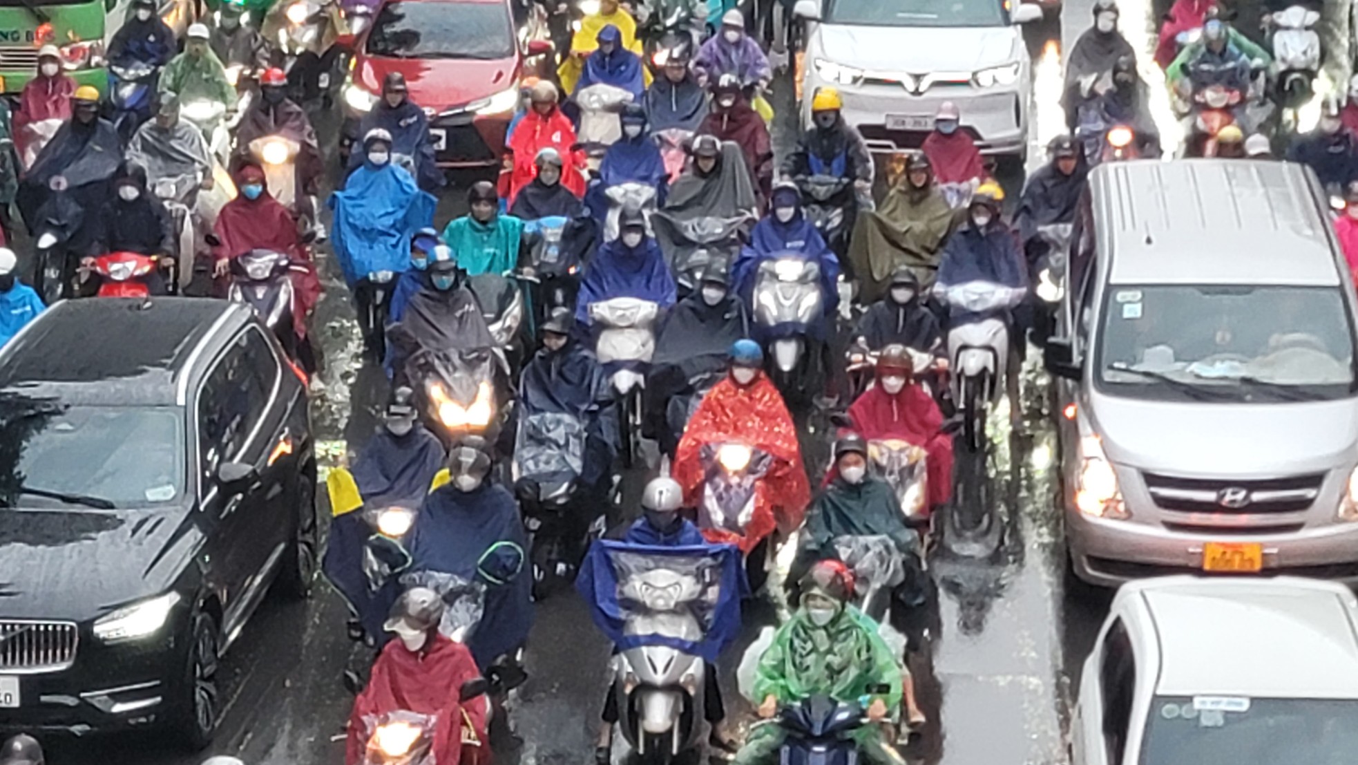 10/01/2024 18:12Mưa tầm tã từ sáng sớm, người Hà Nội chật vật 'vượt' ùn tắc đến công sở