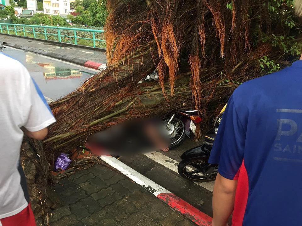 Trao đổi với chúng tôi, lực lượng cảnh sát PCCC Công an quận Tây Hồ xác nhận thông tin, mưa gió khiến cho một cây si lớn ở đường ven Hồ Tây ngã xuống đè trúng anh N.H.T (26 tuổi, ngụ Xuân Đỉnh, Bắc Từ Liêm, Hà Nội). Hậu quả khiến anh T. tử vong tại chỗ.