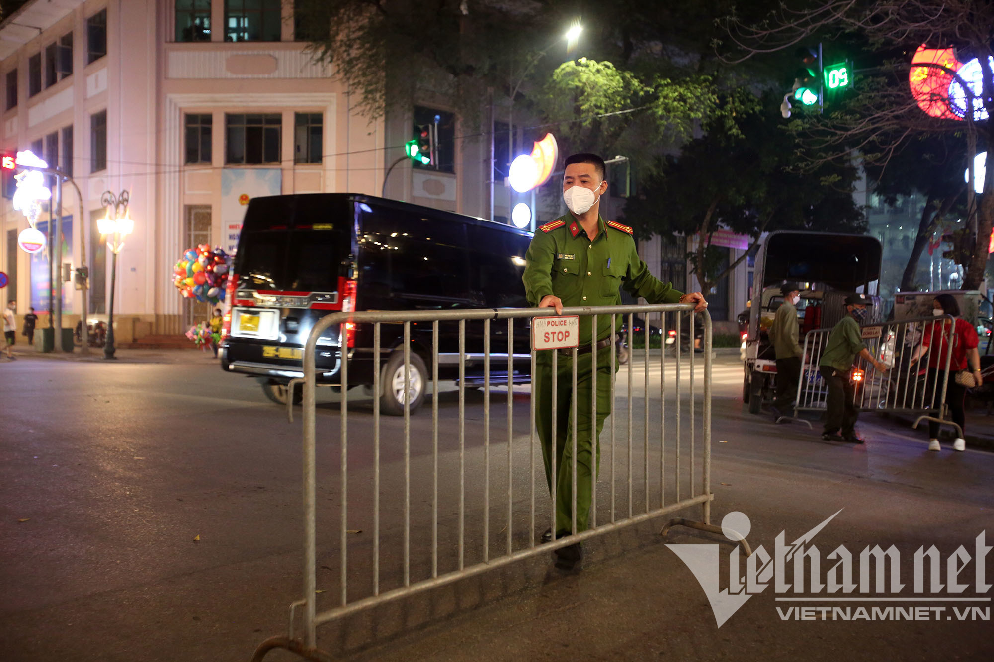 Đúng 19h tối 18/3, lực lượng chức năng đã thiết lập hàng rào barie ngăn các phương tiện lưu thông qua khu vực bờ hồ Hoàn Kiếm, TP Hà Nội.