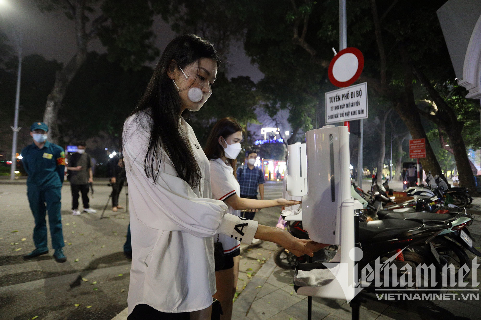 19/03/2022 15:21Nam thanh nữ tú rửa tay, xịt khuẩn dạo chơi phố đi bộ hồ Gươm