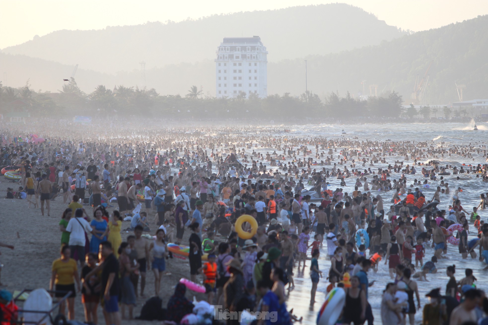 Hai ngày cuối tuần, hàng vạn du khách thập phương đã kéo nhau về bãi biển Cửa Lò để tắm, vui chơi giải nhiệt trong những ngày nắng nóng đỉnh điểm.