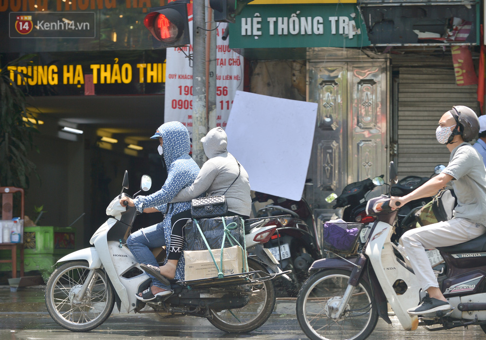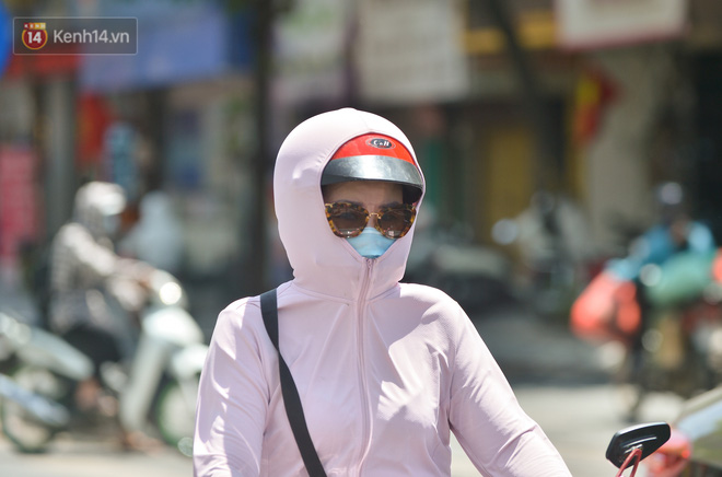Thời tiết nắng nóng gay gắt tại Hà Nội lên đến 40 độ C khiến nhiều người dân bịt kín mít, gặp khó khăn khi mưu sinh, di chuyển trên đường.