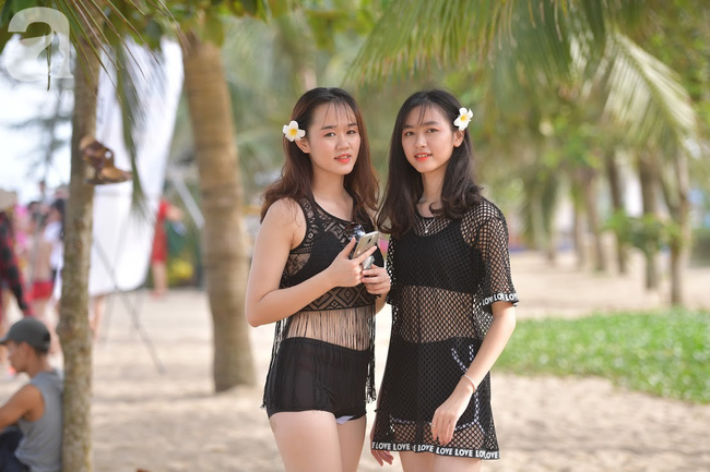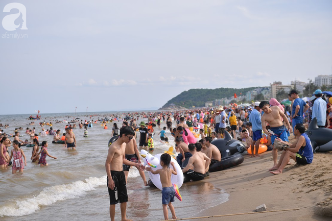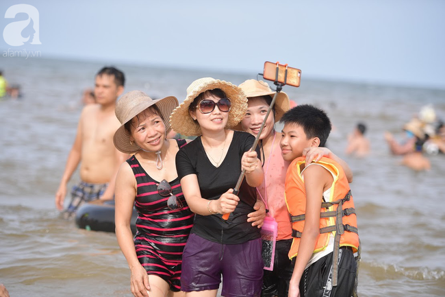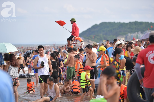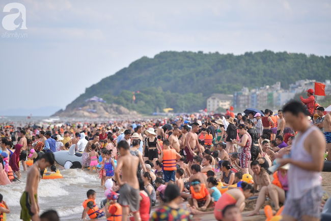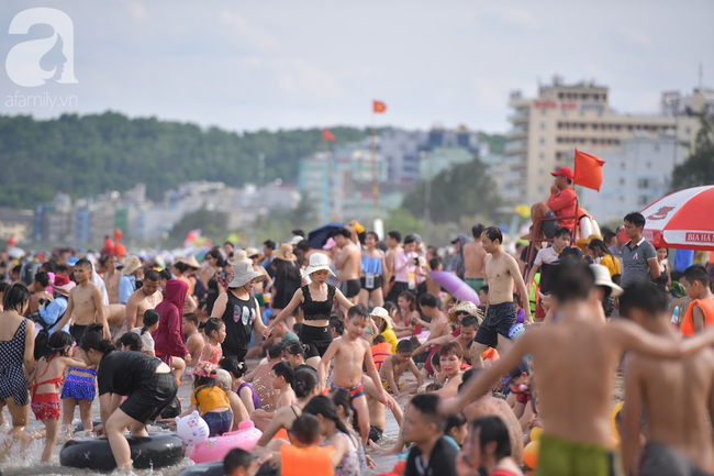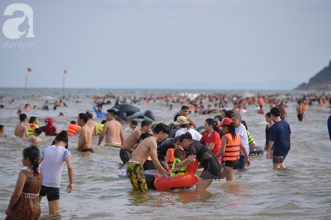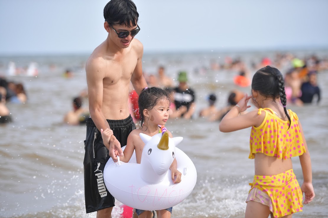 Theo ghi nhận của PV, những ngày nắng nóng vừa qua, dọc bãi biển từ đền Độc Cước đến cuối bãi tắm D, hàng trăm du khách đổ xuống biển để tắm, giải nhiệt, mong muốn xua đi cái nóng oi bức của mùa hè đang bủa vây.