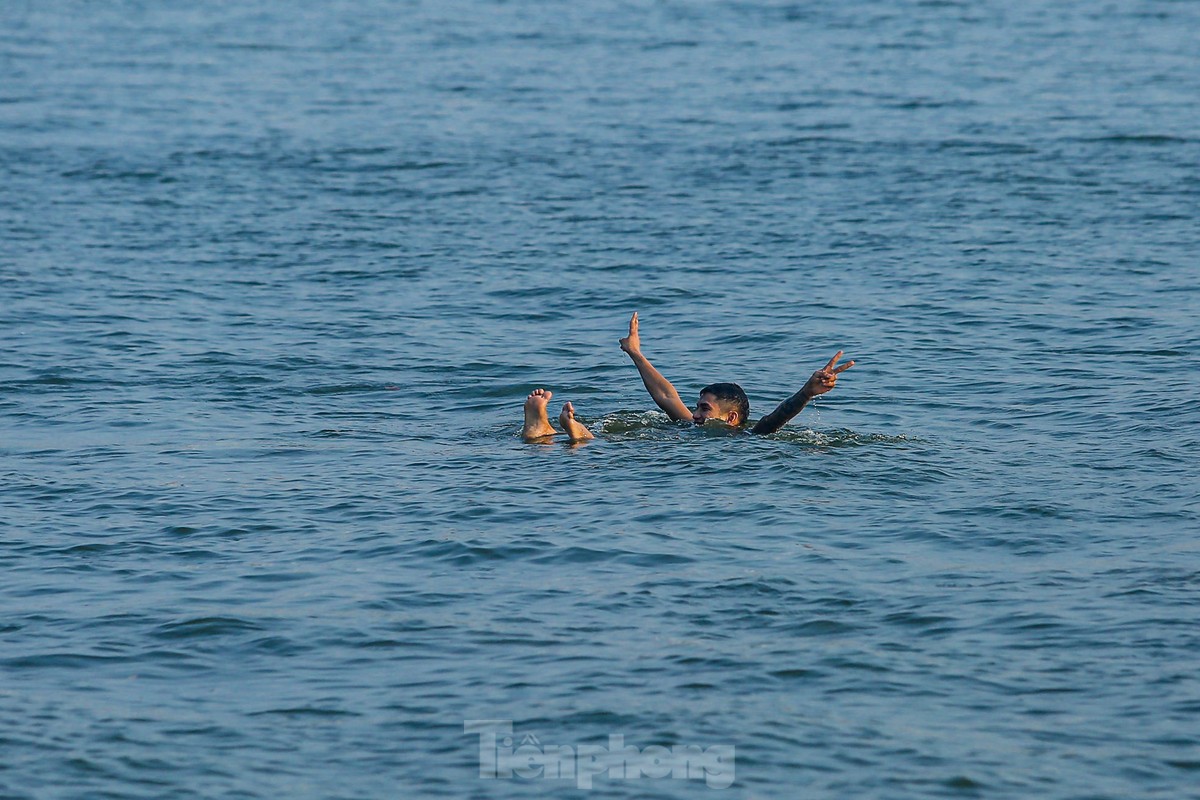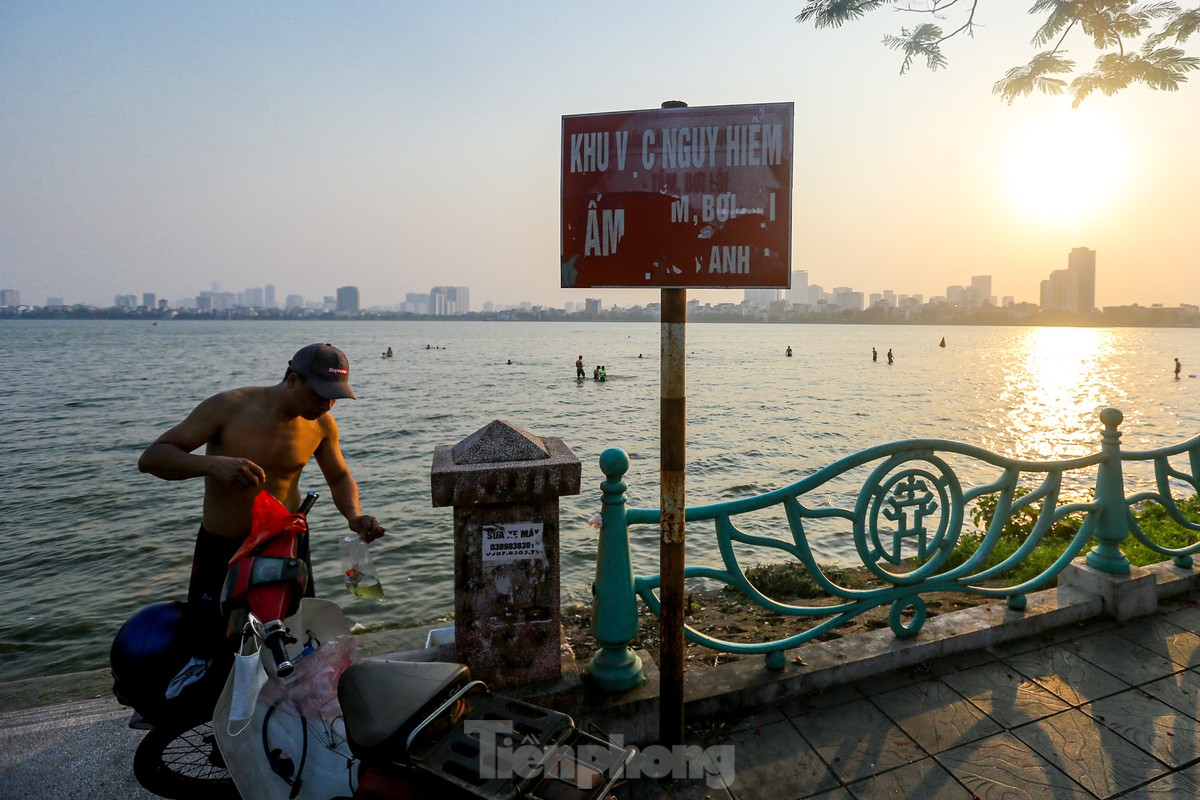 Những ngày qua, thời tiết ở Hà Nội nắng nóng ở mức nhiệt độ cao, gần 40 độ, khiến nhiều người tỏ ra nóng bức, tìm đến các địa điểm để giải nhiệt. Trong đó, hồ Tây là một “bể bơi” khổng lồ để người dân bơi lội trong những ngày nắng nóng gay gắt bất chấp biển cấm tắm được cắm tại đây.