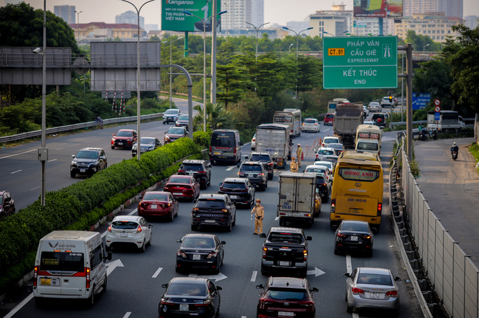 Đáng chú ý là tại điểm cuối cao tốc Pháp Vân - Cầu Giẽ (hướng vào trung tâm Hà Nội) lượng phương tiện tăng cao đột biến. Lượng ô tô ùn tắc tại nút giao Pháp Vân – Vành đai 3 trên cao kéo dài gần 3km.
