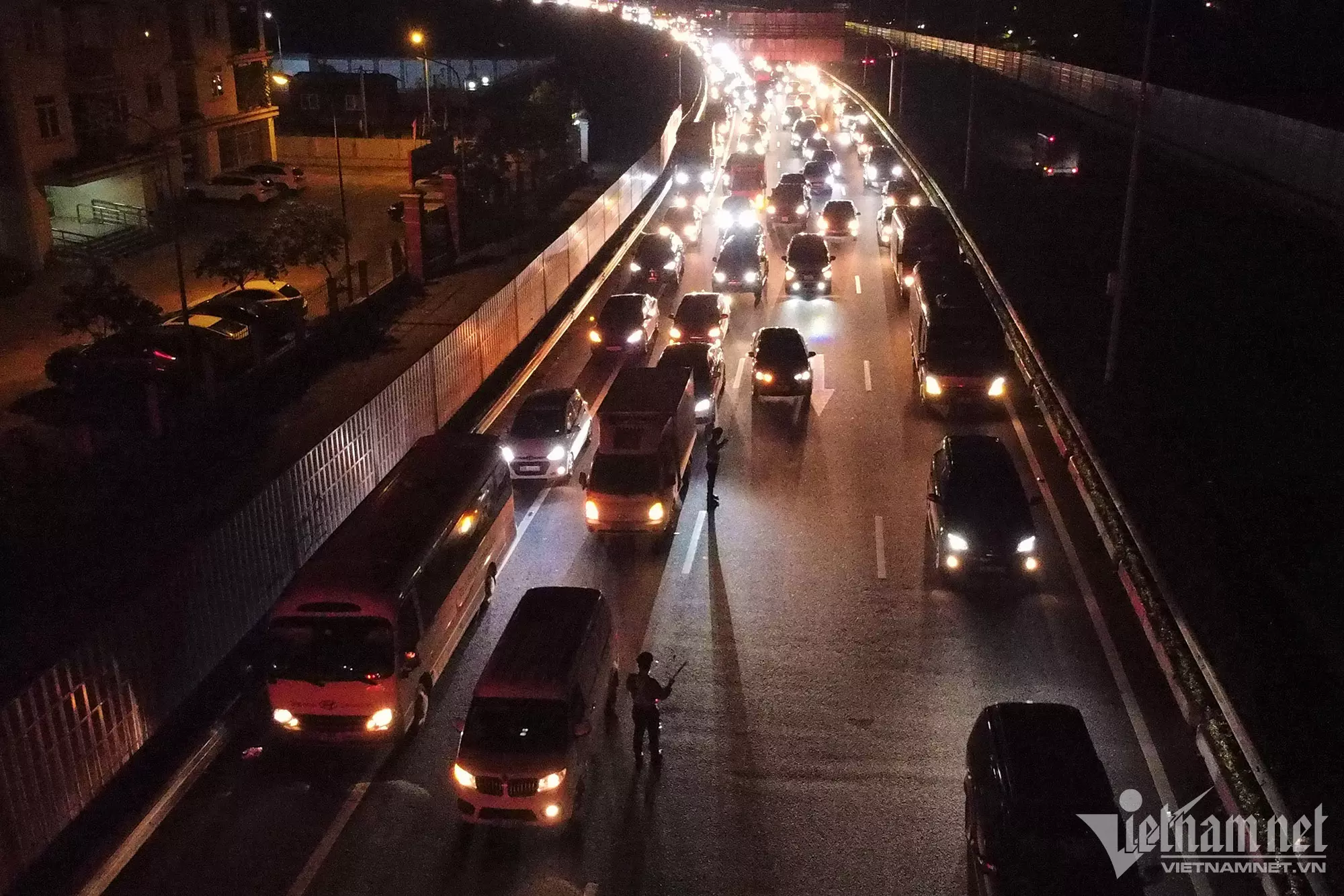 Nhằm tránh ùn tắc tại nút giao cao tốc Pháp Vân – Cầu Giẽ- Ninh Bình với đường Vành đai 3 trên cao, Đội Tuần tra đường bộ cao tốc số 3 (Đội 3, Cục CSGT) đã bố trí lực lượng lập “hàng rào sống” để phân luồng.