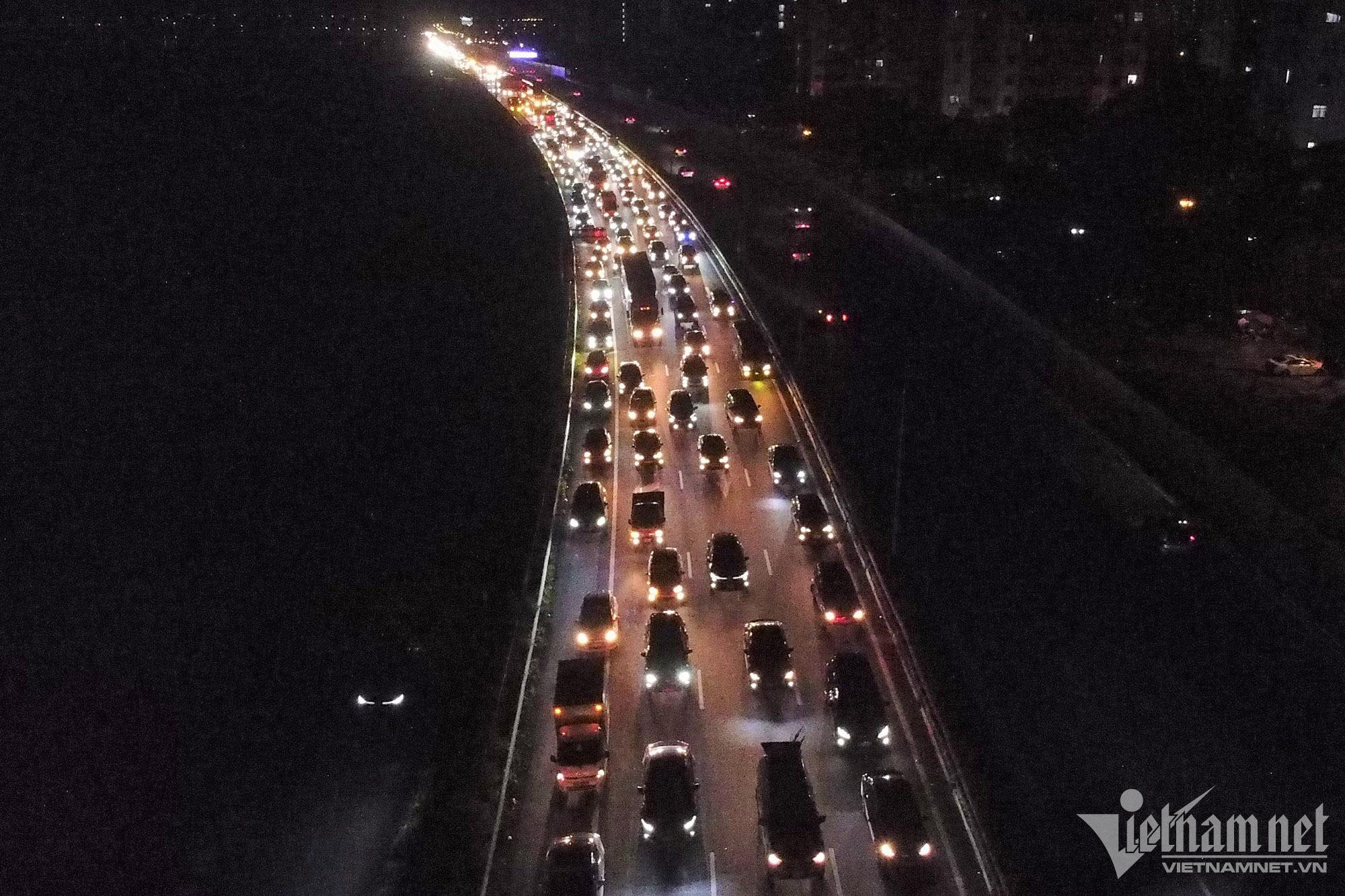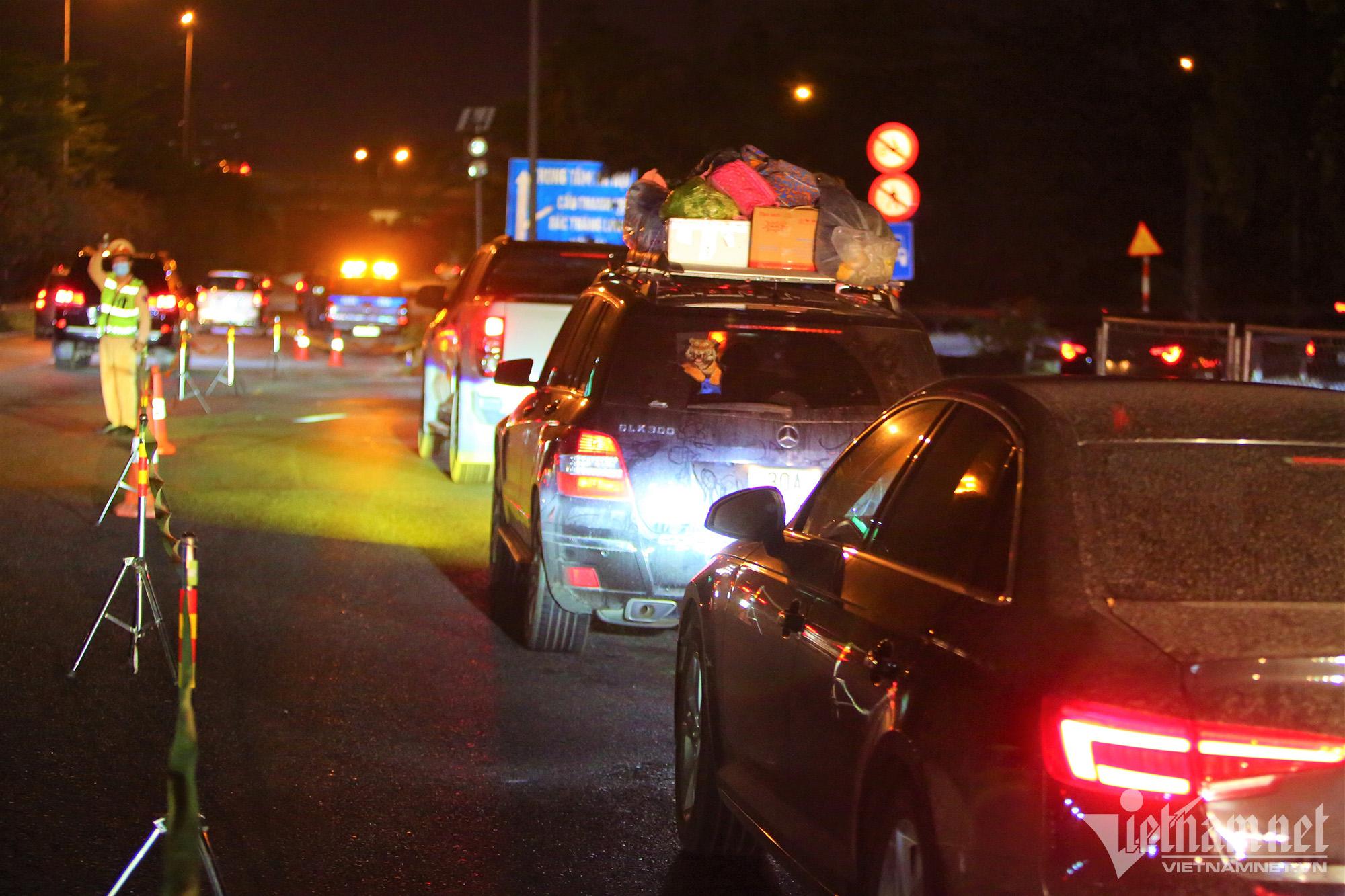 Hơn 22h đêm 2/5, tại tuyến đường cao tốc Pháp Vân – Cầu Giẽ - Ninh Bình, lượng phương tiện dồn về đây vẫn tăng.