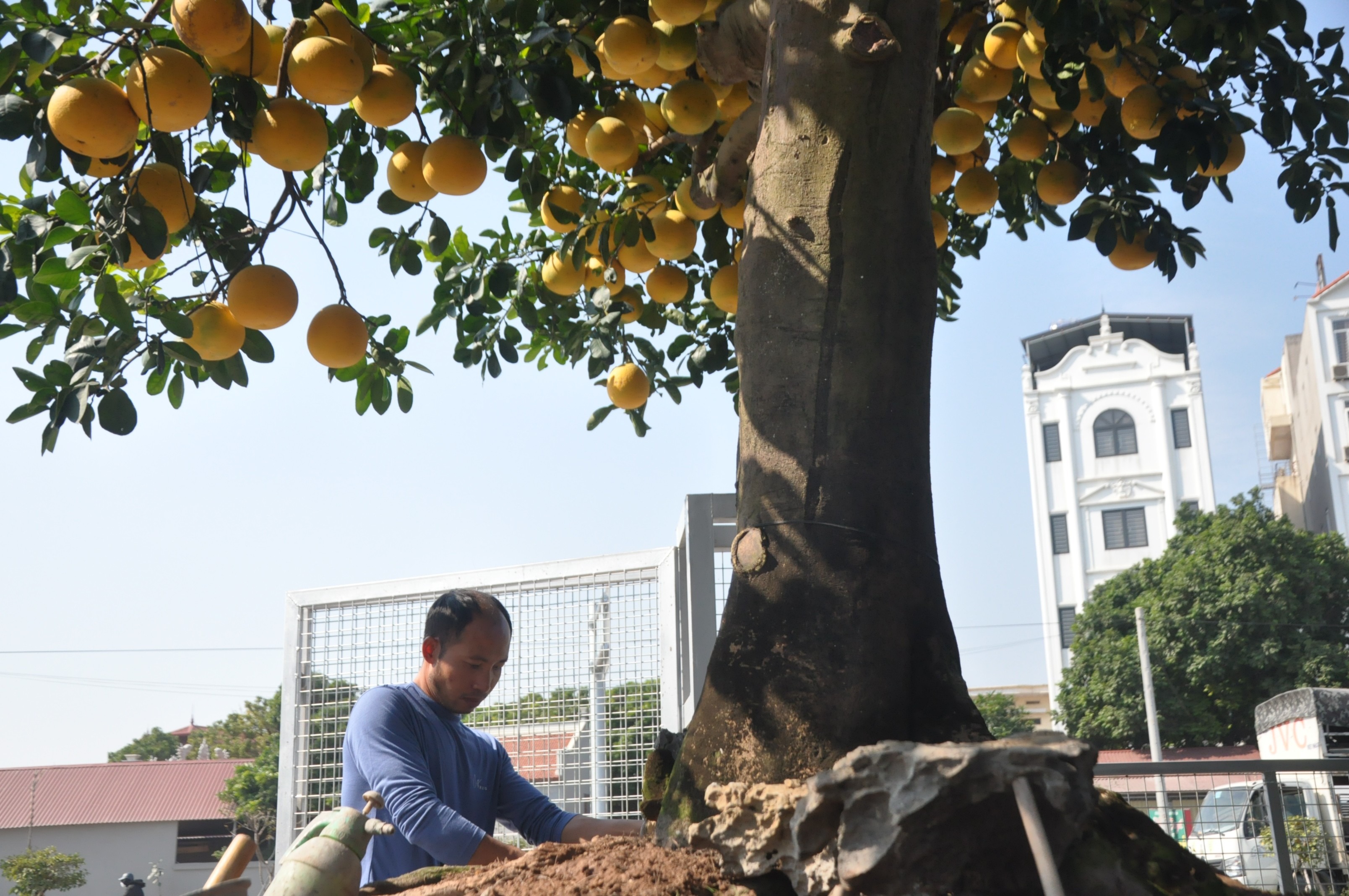 Cách đây hơn 5 năm, anh Chính mua lại cây bưởi này với giá 200 triệu đồng. Sau đó, anh mang về vườn và bắt đầu chăm sóc, tạo tác trong thời gian dài.