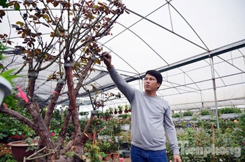 Anh Tuyên bắt đầu làm cây cảnh từ những năm 2003, chủ yếu trồng hoa hồng (với hơn một chục giống khác nhau) và hoa lan. Hiện tại, gia đình anh có một nhà vườn 1.000 mét vuông để trưng bày cây cảnh và một khu sản xuất rộng khoảng 1 ha. |