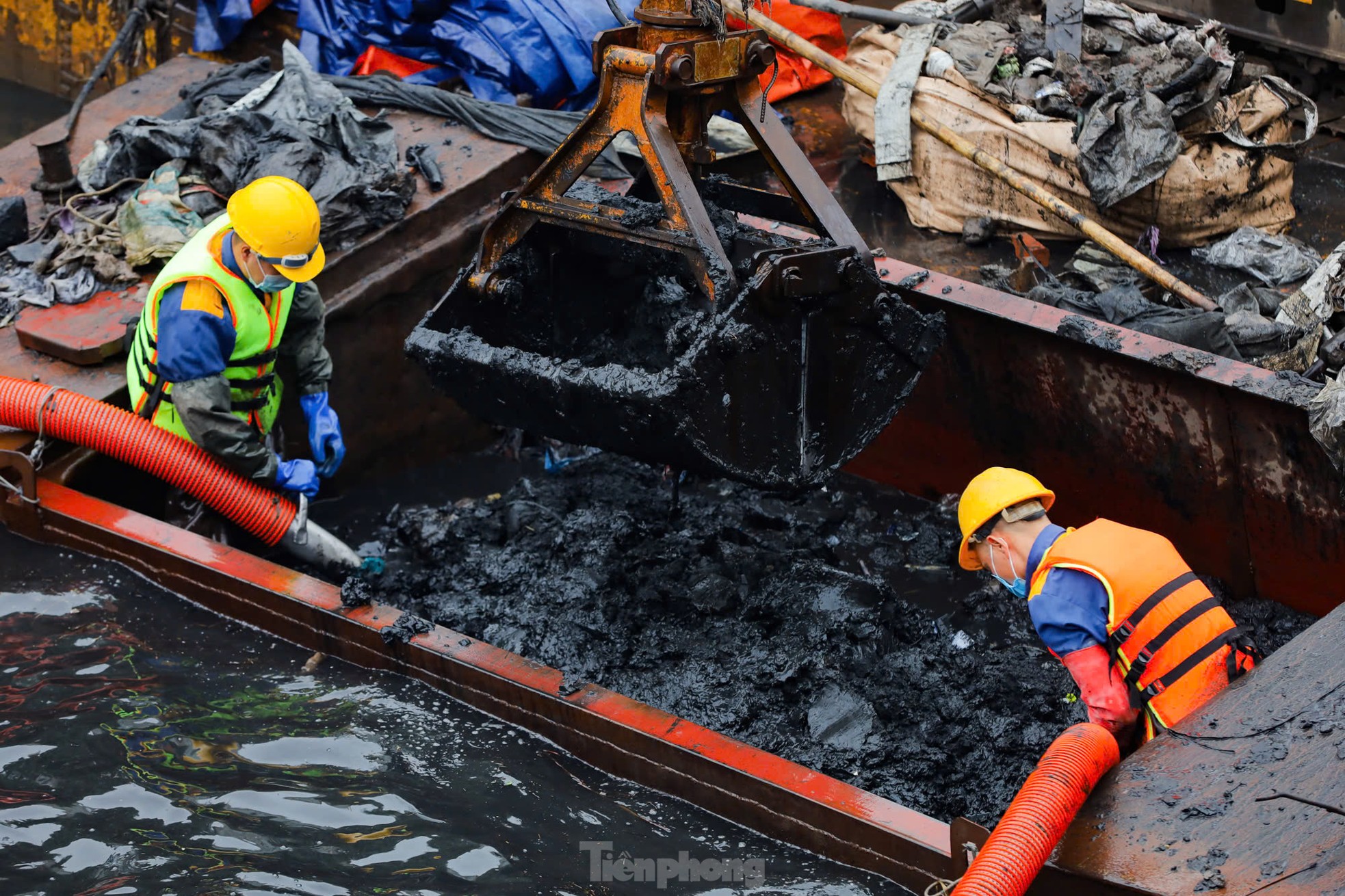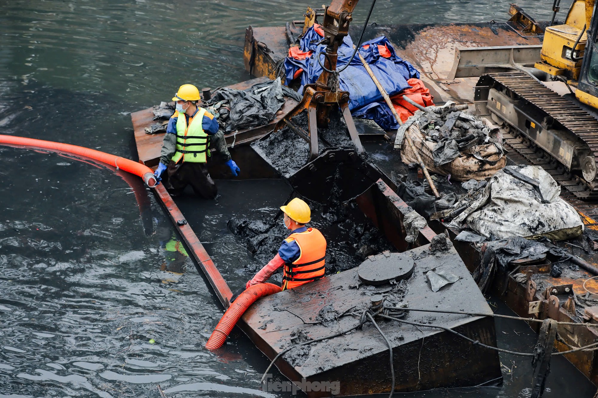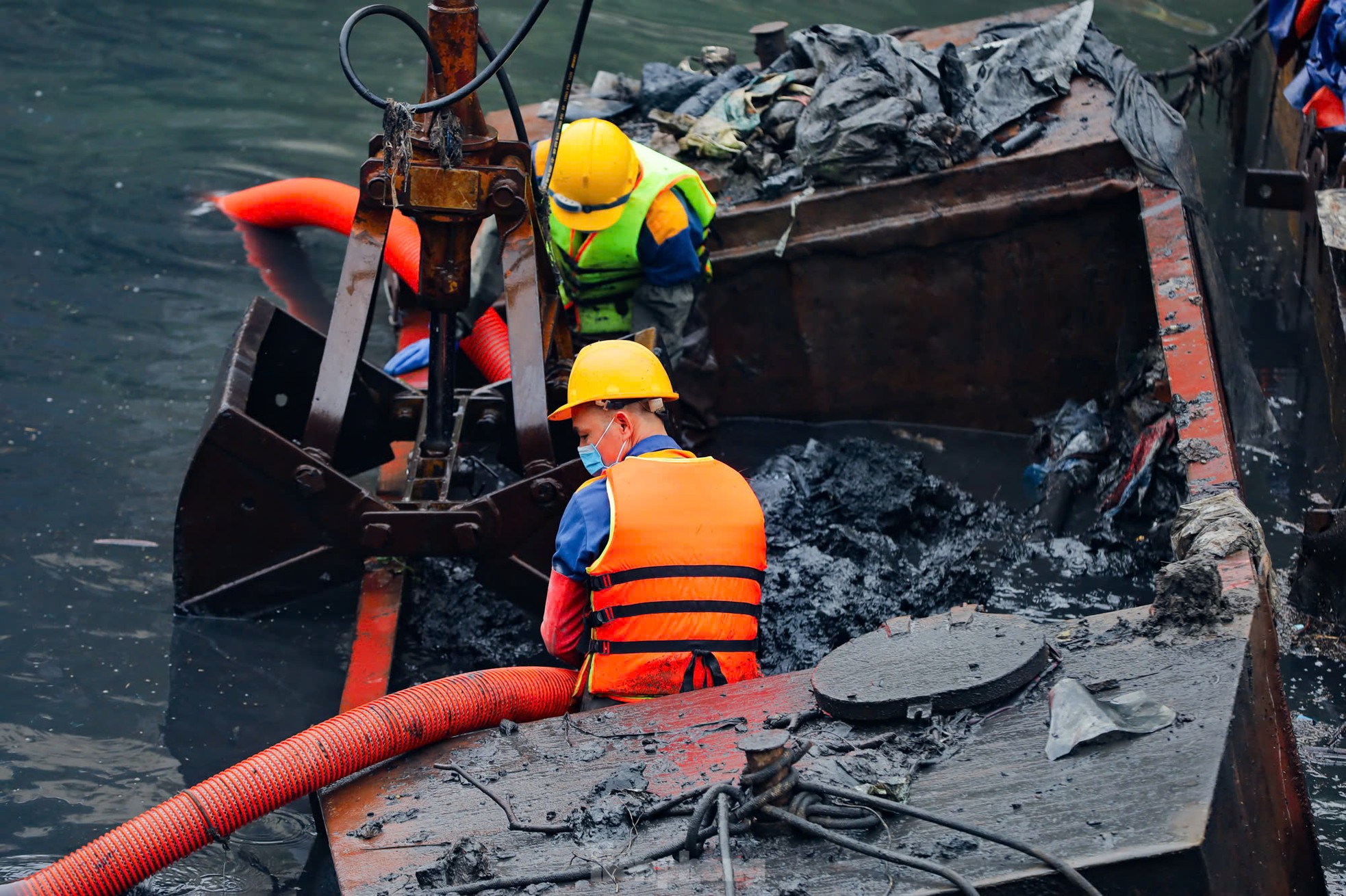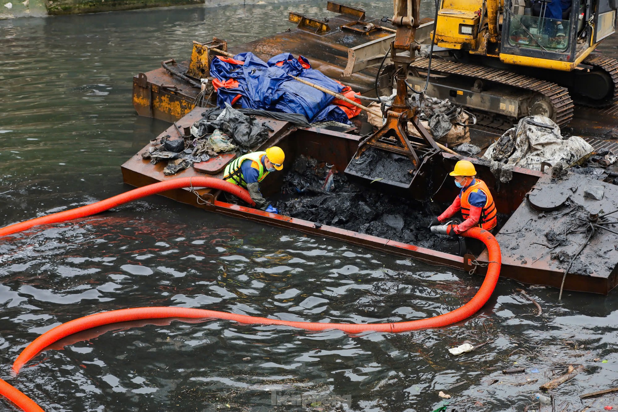 | Ngâm mình dưới nước đen, nạo vét bùn sông Tô Lịch |