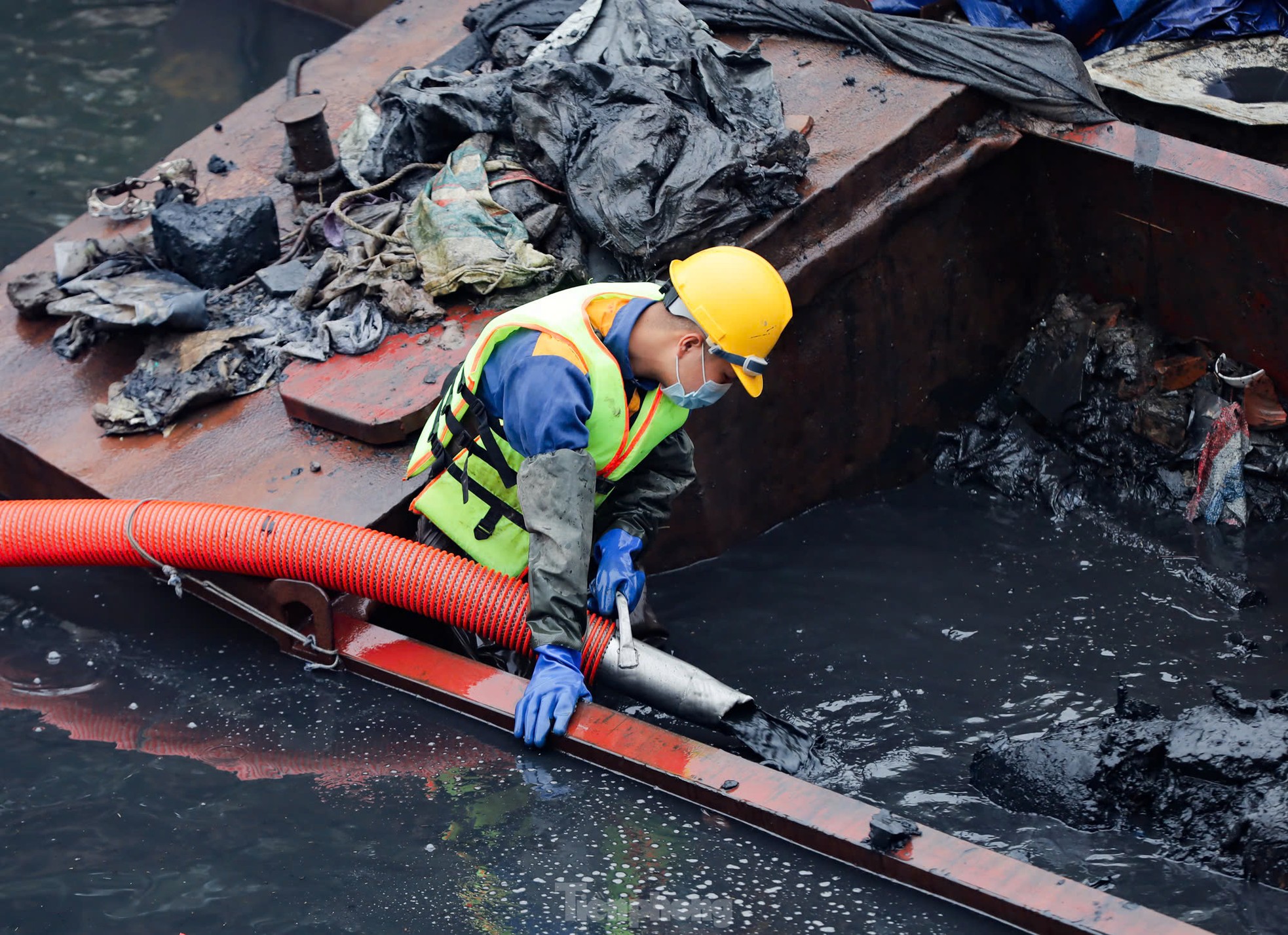 22/02/2025 00:37Ngâm mình dưới nước đen, nạo vét bùn sông Tô Lịch
