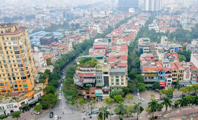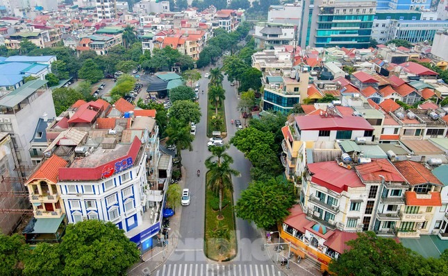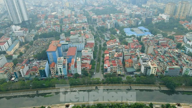 Toàn cảnh con đường mang tên nhà thơ Lưu Quang Vũ nhìn từ hướng bờ sông Tô Lịch.