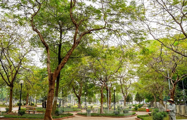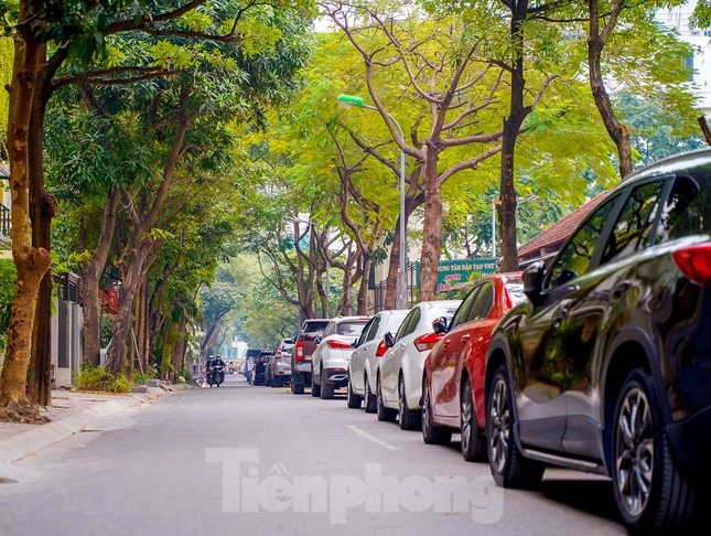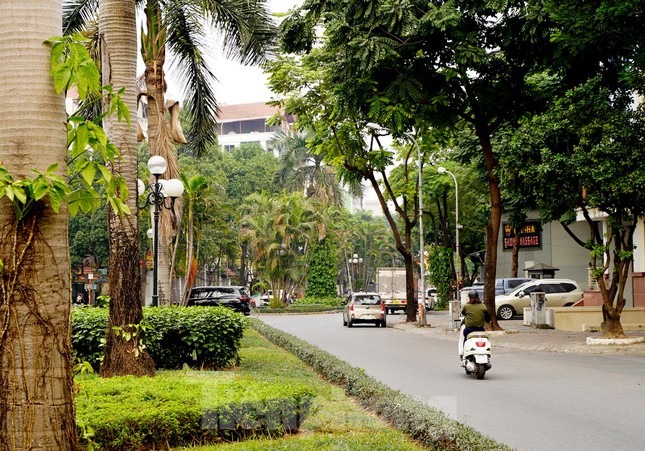 Đoạn đầu phố Lưu Quang Vũ rộng 26 mét. Dải phân cách lớn với hàng hoa cây xanh trên phố này.