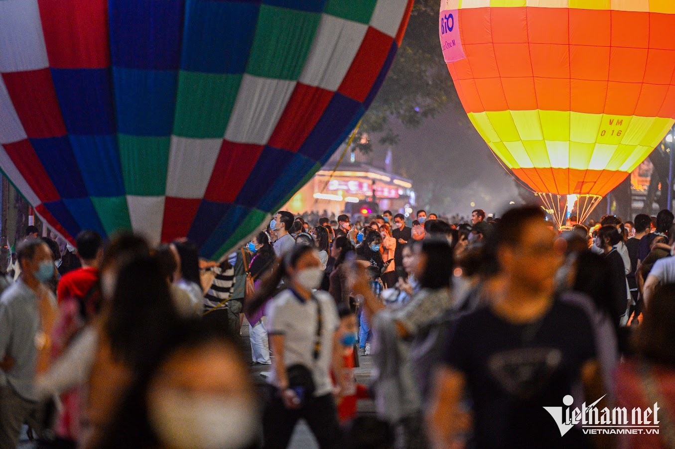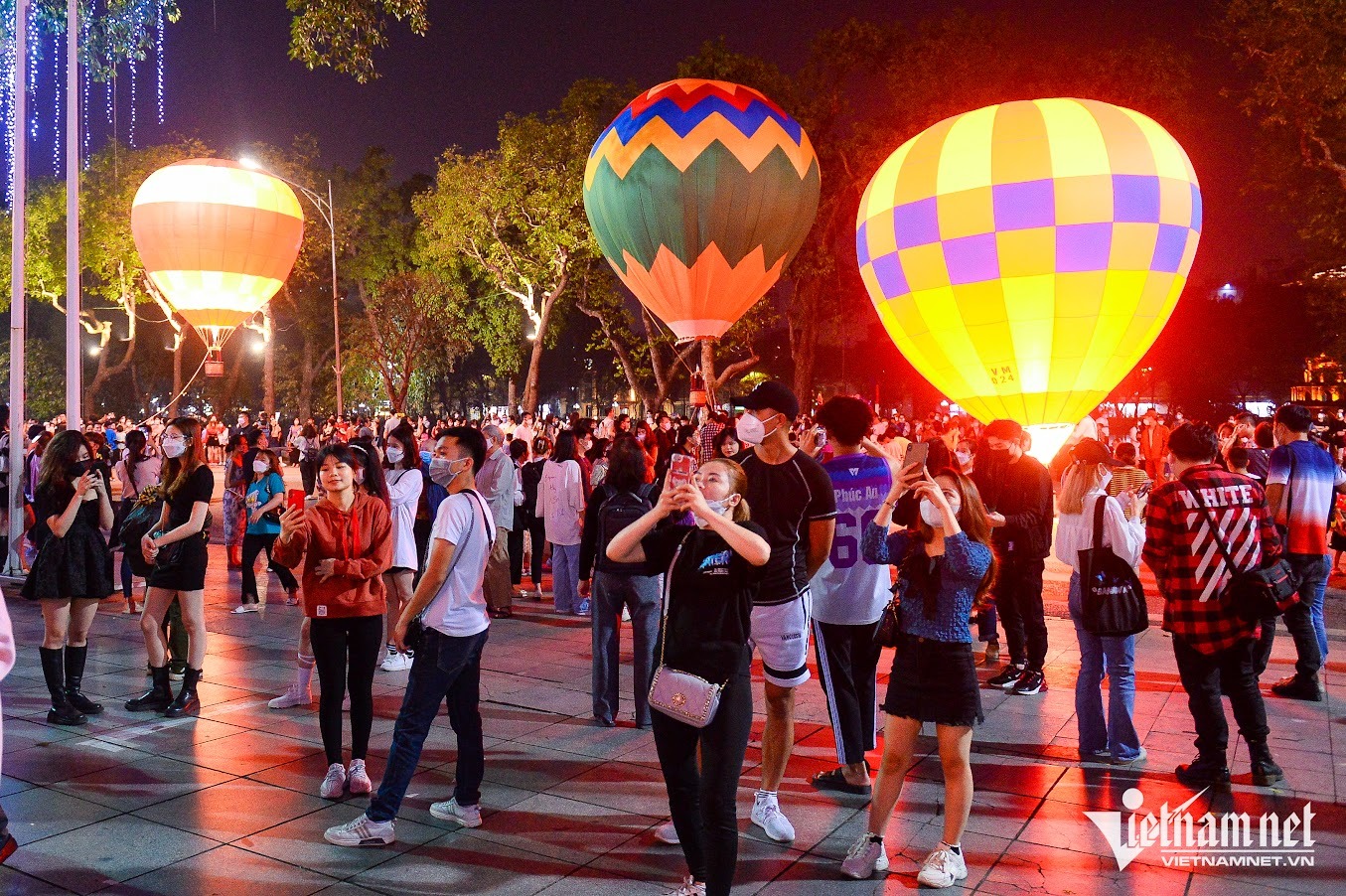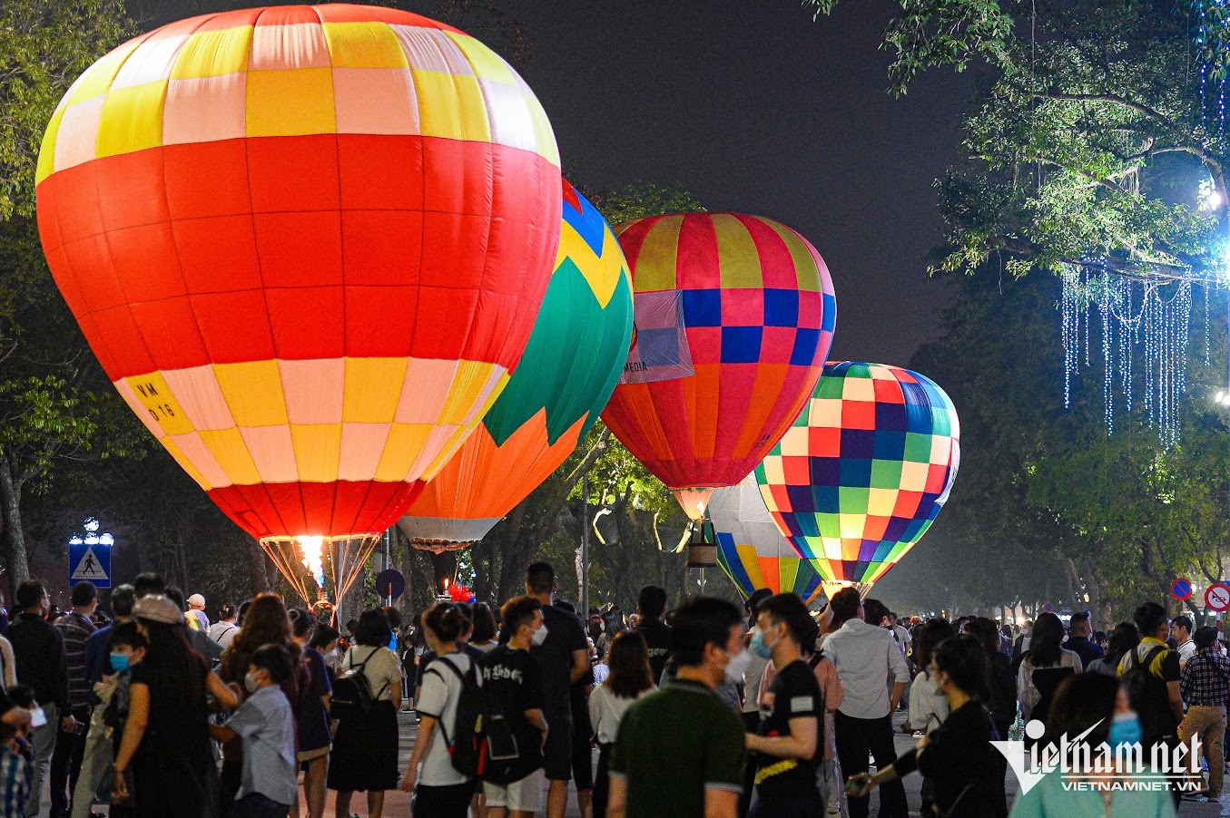 Tối 25/3, hàng ngàn người dân và du khách đã đổ về phố đi bộ Hồ Gươm (Hoàn Kiếm) để chứng kiến những chiếc khinh khí cầu khổng lồ, được thắp sáng và bay lên không trung.