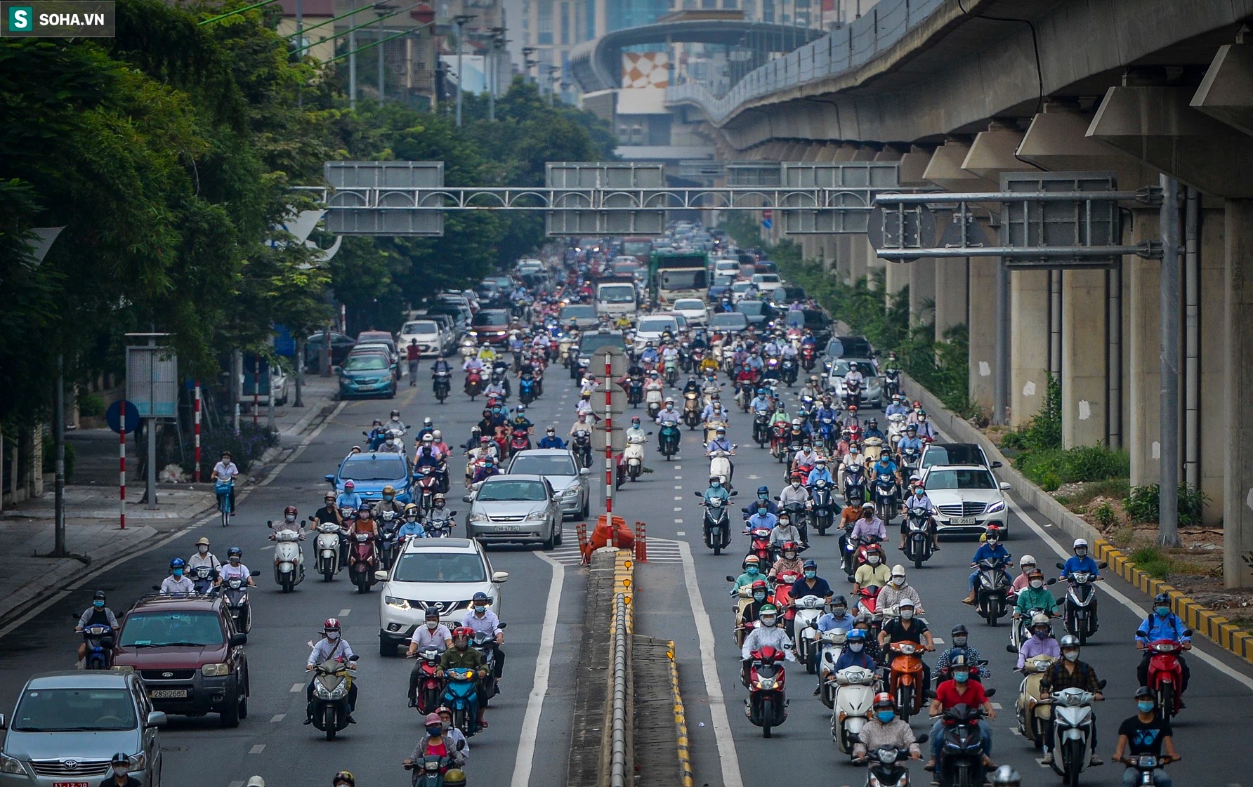 Nhiều tuyến phố tại Thủ đô Hà Nội như Nguyễn Trãi, Tây Sơn, Vành đai 3, Tôn Đức Thắng sáng nay tấp nập phương tiện di chuyển trong ngày cuối thực hiện giãn cách xã hội đợt 4.