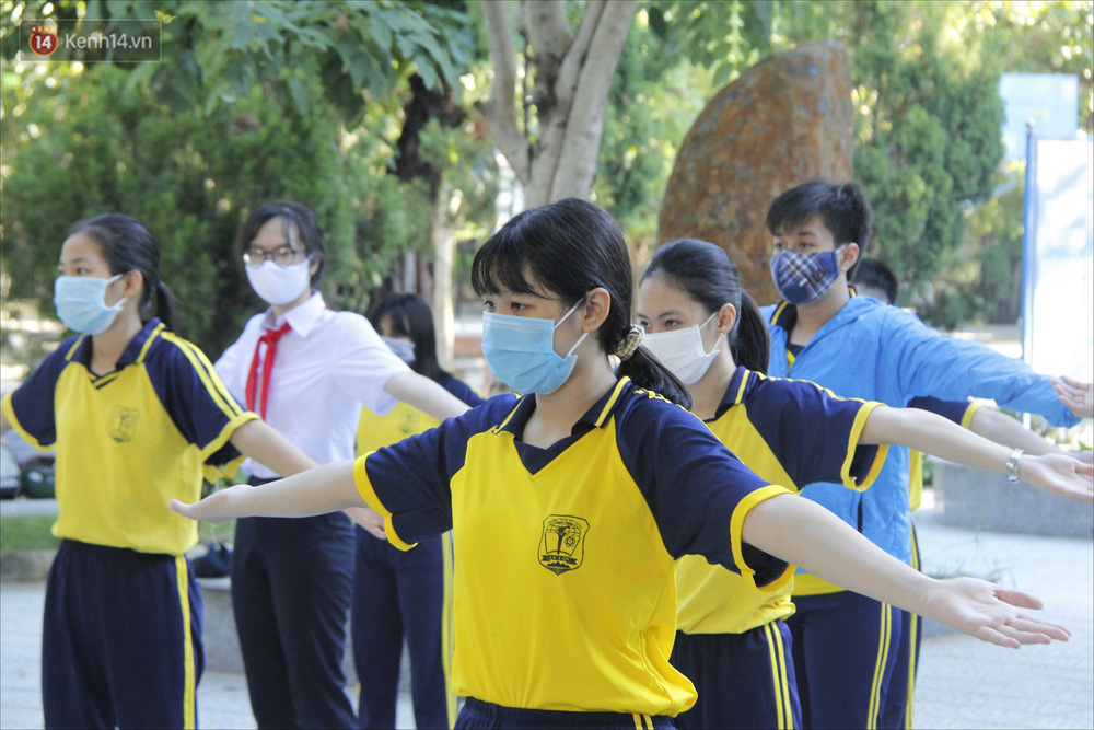 Sáng 14/9, toàn bộ học sinh cấp trung học ở Đà Nẵng đã trở lại trường học với phương châm “5K” phòng dịch: Khẩu trang, khử khuẩn, khoảng cách, không tụ tập đông người và khai báo y tế.