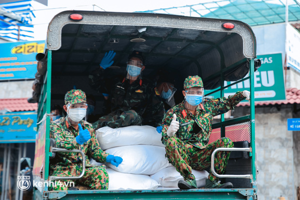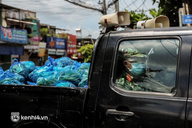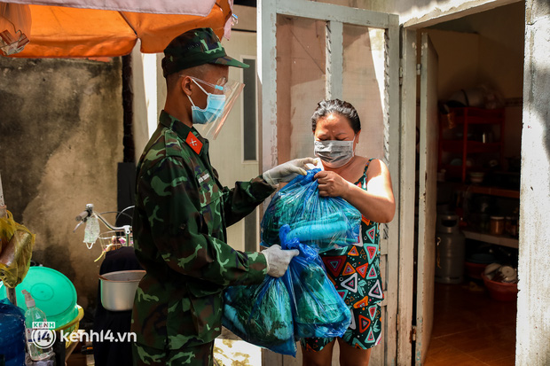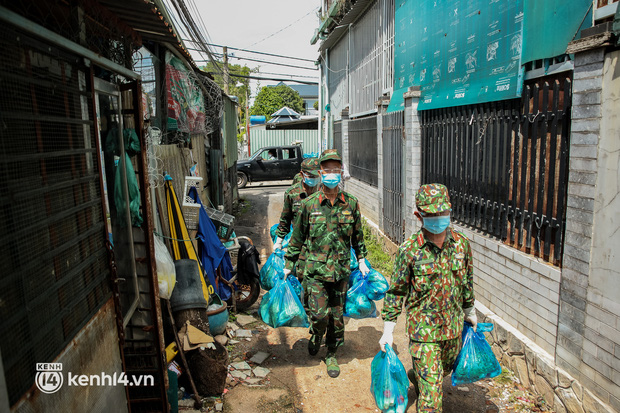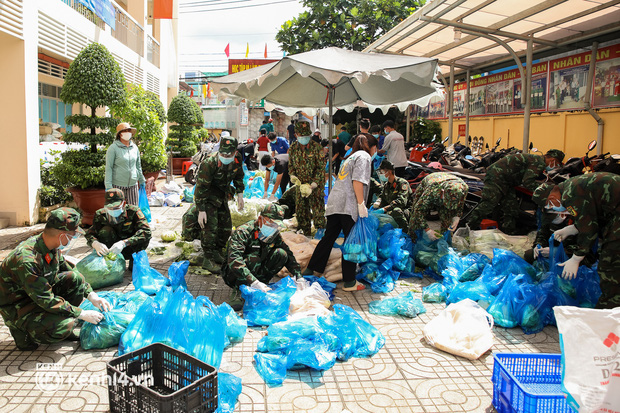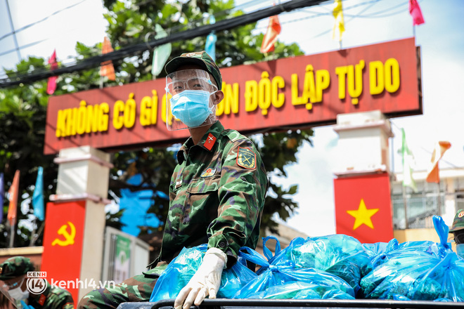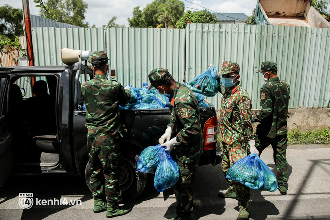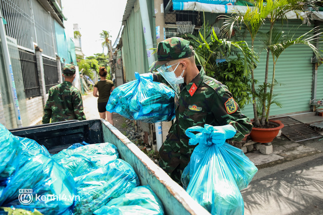 Trong sáng 23/8, các chiến sĩ thuộc Sư đoàn 5, Quân khu 7 đã chuẩn bị hàng trăm phần rau xanh và lương thực đưa đến từng hẻm nhỏ, trao tận tay người dân ở phường Trường Thọ, TP Thủ Đức.