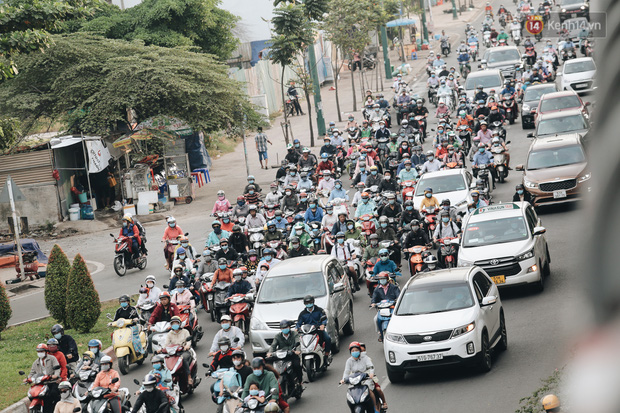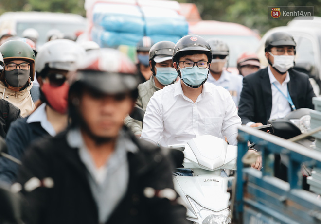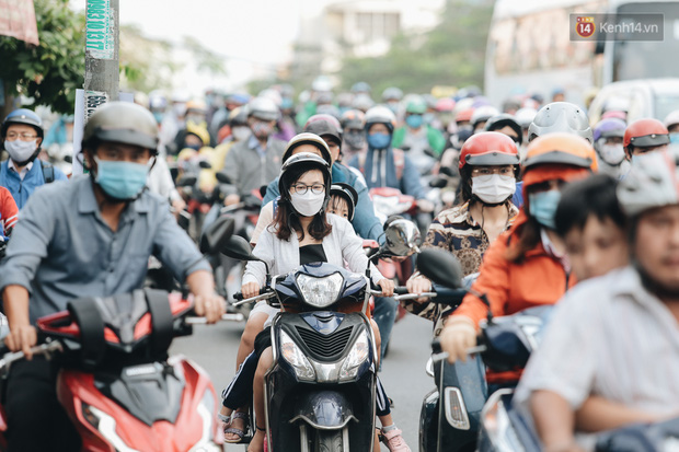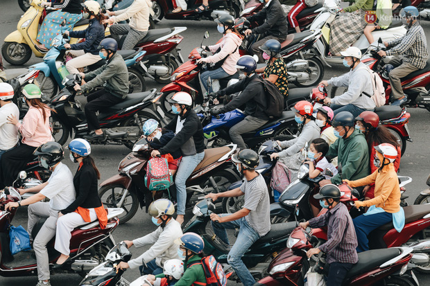Tại TP.HCM, ngày đầu tiên người dân đi làm sau kỳ nghỉ Tết Dương lịch 2021, nhiều tuyến đường cửa ngõ bị ùn tắc, giao thông đi lại khó khăn. Do thời tiết TP.HCM se lạnh vào buổi sáng nên người dân di chuyển trên đường đi làm đều mặc áo khoác, thậm chí có người quàng khăn để giữ ấm.