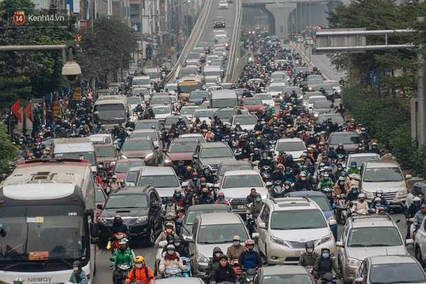Các "điểm đen" ùn tắc như Ngã Tư Sở, Nguyễn Trãi, Đại La - Minh Khai, dòng người vội vã đến trường, đến công ty gây ra ùn tắc cục bộ. Trung bình người dân mất khoảng 10-15 phút mới có thể dễ dàng lưu thông.