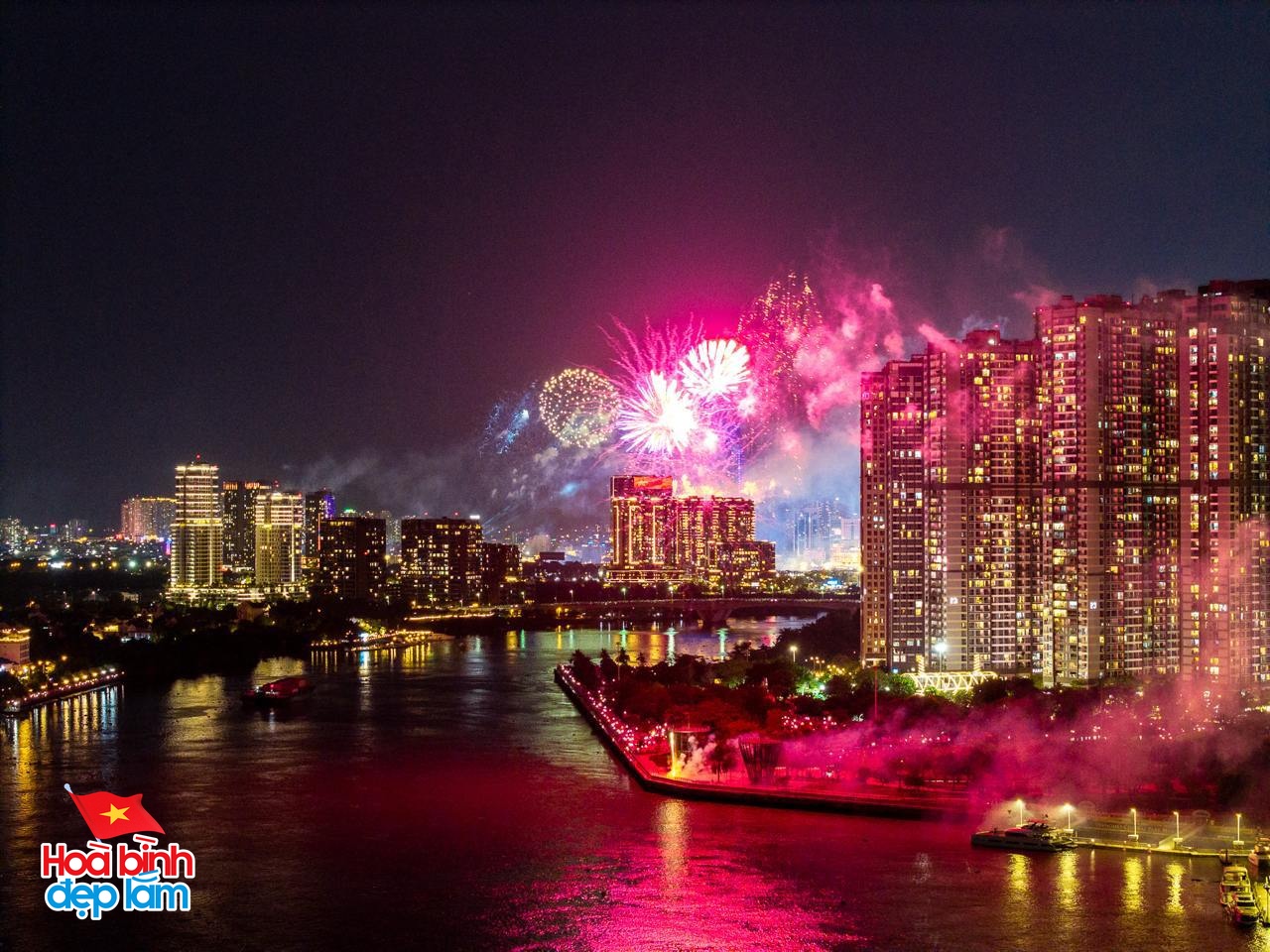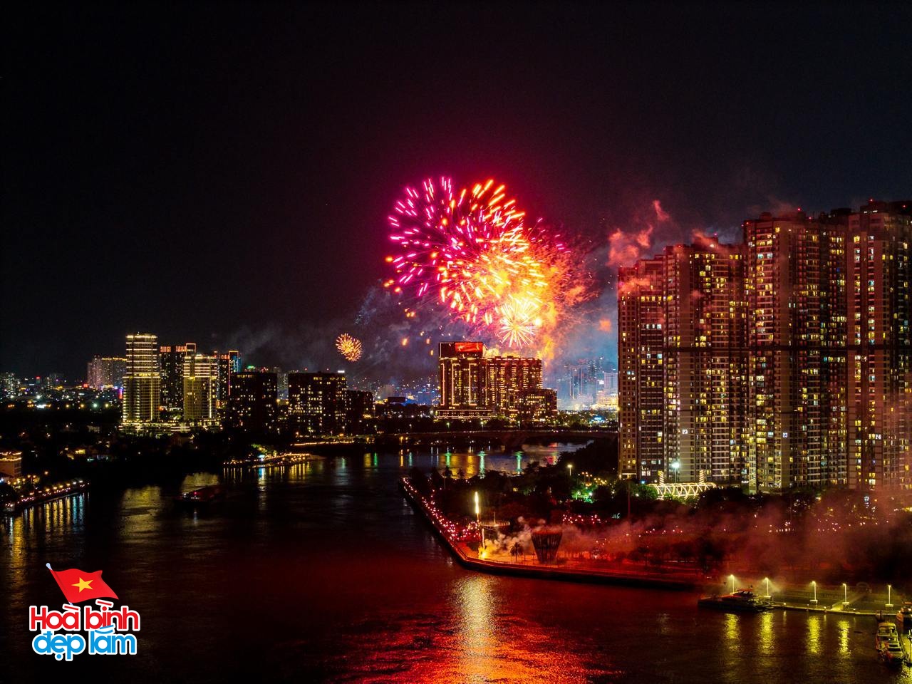 Từ 21 giờ đến 21 giờ 15 phút sẽ diễn ra màn bắn pháo hoa tại 30 điểm khắp TP.HCM. Trong đó, có hai điểm bắn tầm cao gồm: Khu vực đường hầm sông Sài Gòn (TP Thủ Đức) và Đền Tưởng niệm liệt sĩ Bến Dược (huyện Củ Chi).