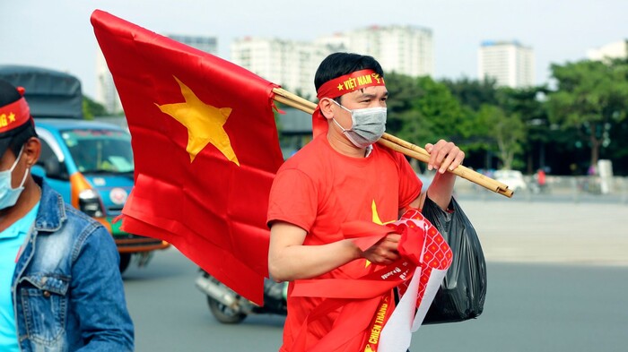Vài giờ trước màn tiếp đón Nhật Bản ở vòng loại World Cup 2022, rất đông CĐV Việt Nam đã tập trung tại sân Mỹ Đình để tiếp sức cho thầy trò HLV Park Hang Seo.