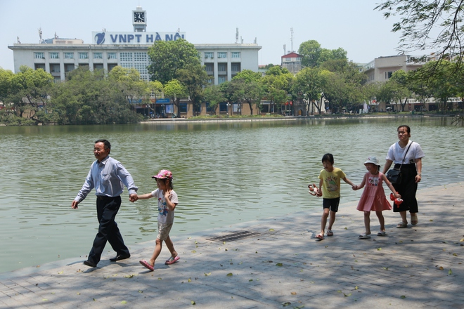 Tại khu vực Lotte Tây Hồ vào trưa ngày 27/4 cũng có rất đông người dân đến đây vừa để vui chơi, mua sắm, vừa "trốn nắng".