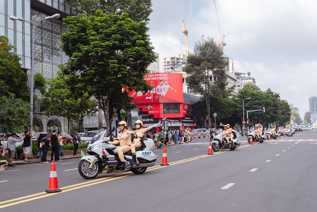 Hiện, ngoài diễn tập chống khủng bố, bảo vệ yếu nhân, lực lượng cảnh sát còn biểu diễn lái môtô phân khối lớn.