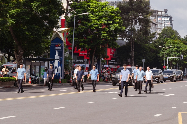 Sáng ngày 5/6, đông đảo người dân đã có mặt trên tuyến đường Lê Lợi (quận 1, TP.HCM) để theo dõi buổi diễn tập phương án bảo vệ nguyên thủ, lãnh đạo cấp cao do lực lượng Công an nhân dân tổ chức.