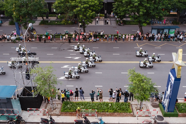 Ngay từ sớm đã có rất đông người dân đứng hai bên đường theo dõi các lực lượng chức năng triển khai đội hình, sử dụng nhiều phương tiện chuyên dụng nhằm xử lý hàng loạt tình huống giả định sát với thực tế như: ngăn chặn hành vi khủng bố, giải cứu con tin và đảm bảo an toàn tuyệt đối cho các yếu nhân.