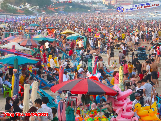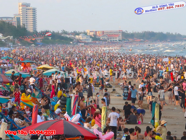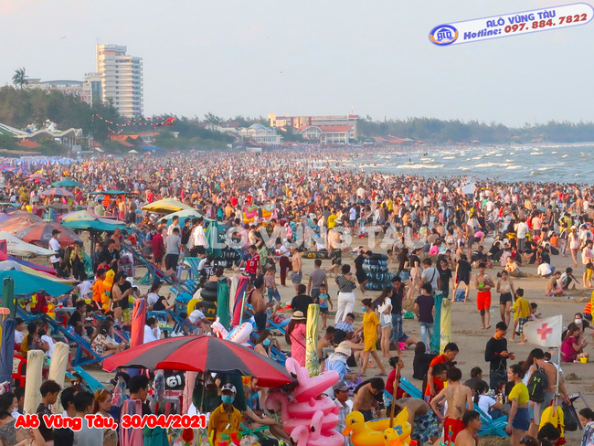 Những hình ảnh được ghi nhận tại bãi biễn Vũng Tàu cho thấy du khách đổ về về đây rất nhiều. Người dân đổ về đây đông đến nỗi bãi biển đông kín người, gần như không còn thấy bất kỳ chỗ trống nào.