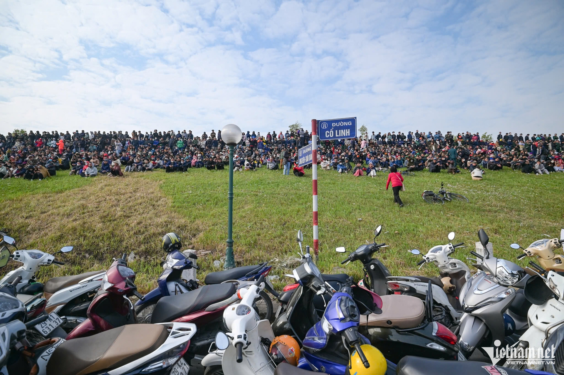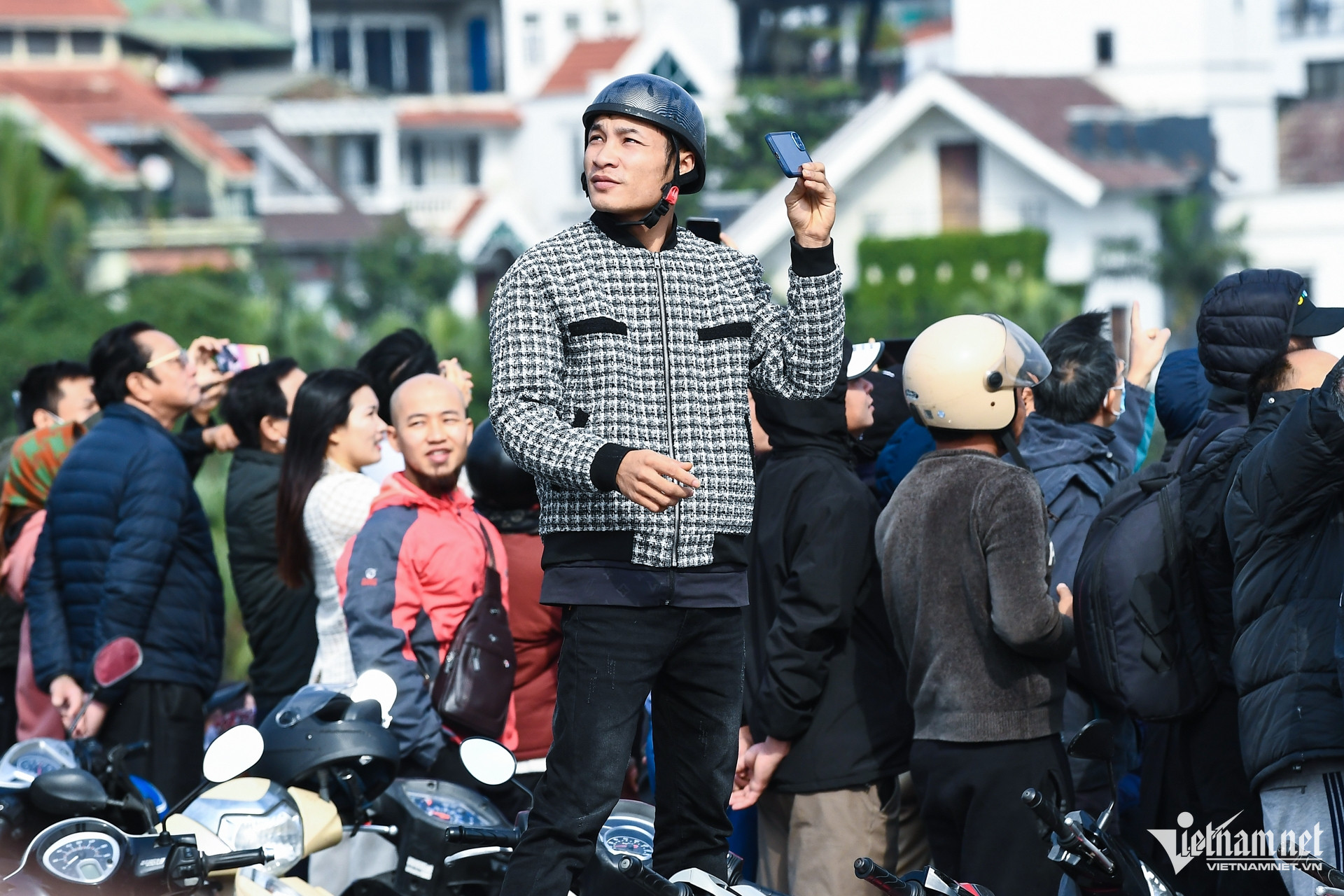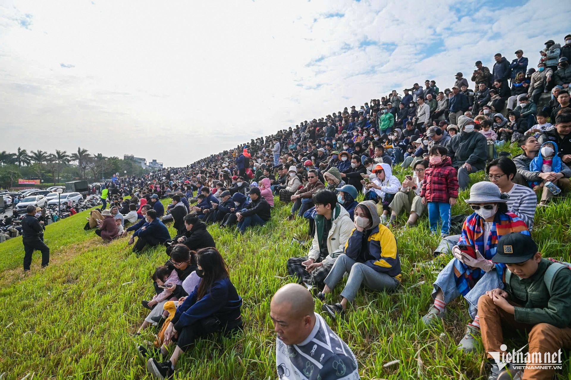 Cả nghìn người dân đứng chật kín khu vực đê Long Biên - Xuân Quan để chờ xem màn trình diễn của tiêm kích Su30-MK2 và trực thăng Mi trong lễ khai mạc Triển lãm Quốc phòng quốc tế Việt Nam 2024.