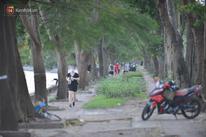 Bất chấp quy định không được tập trung đông người để phòng chống dịch bệnh Covid-19, người dân Hà Nội vẫn vô tư ra hồ Linh Đàm tập thể dục, tắm giải nhiệt.