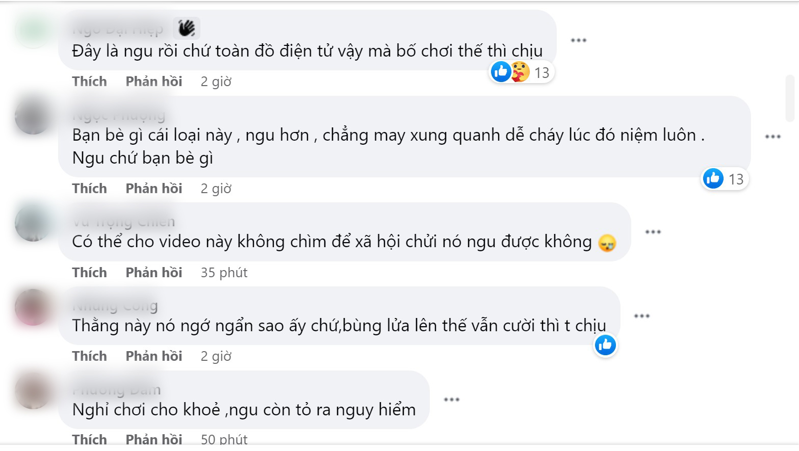 Không những tiềm ẩn nguy hiểm về nguy cơ cháy nổ, pha trêu bạn của người thanh niên rất dễ làm người khác bị thương nếu như ngọn lửa vượt ra ngoài tầm kiểm soát.