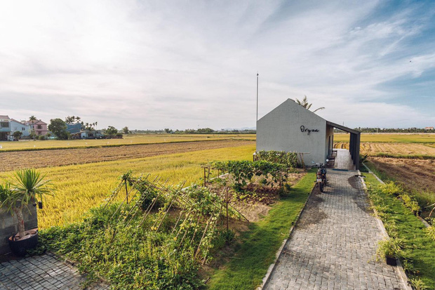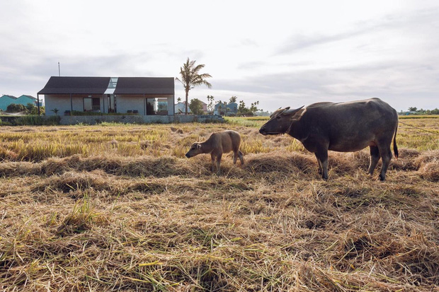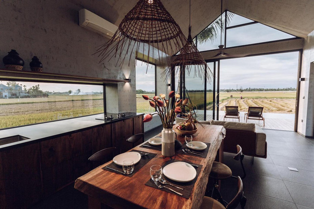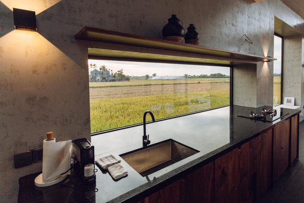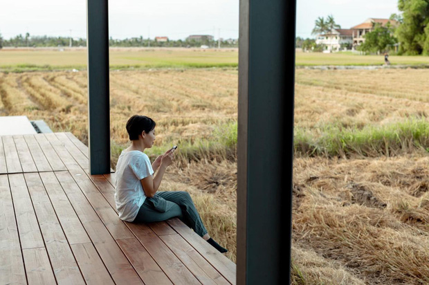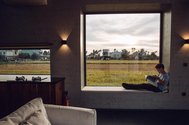 Từ bên trong ngôi nhà, mọi người có thể dễ dàng ngắm nhìn bức tranh thôn quê yên bình. Cánh đồng thẳng cánh cò bay với lúa theo mùa vụ, ngồi ở bất kỳ góc nào cũng có thể tận hưởng hơi thở của đồng quê, của nắng gió miền Trung.