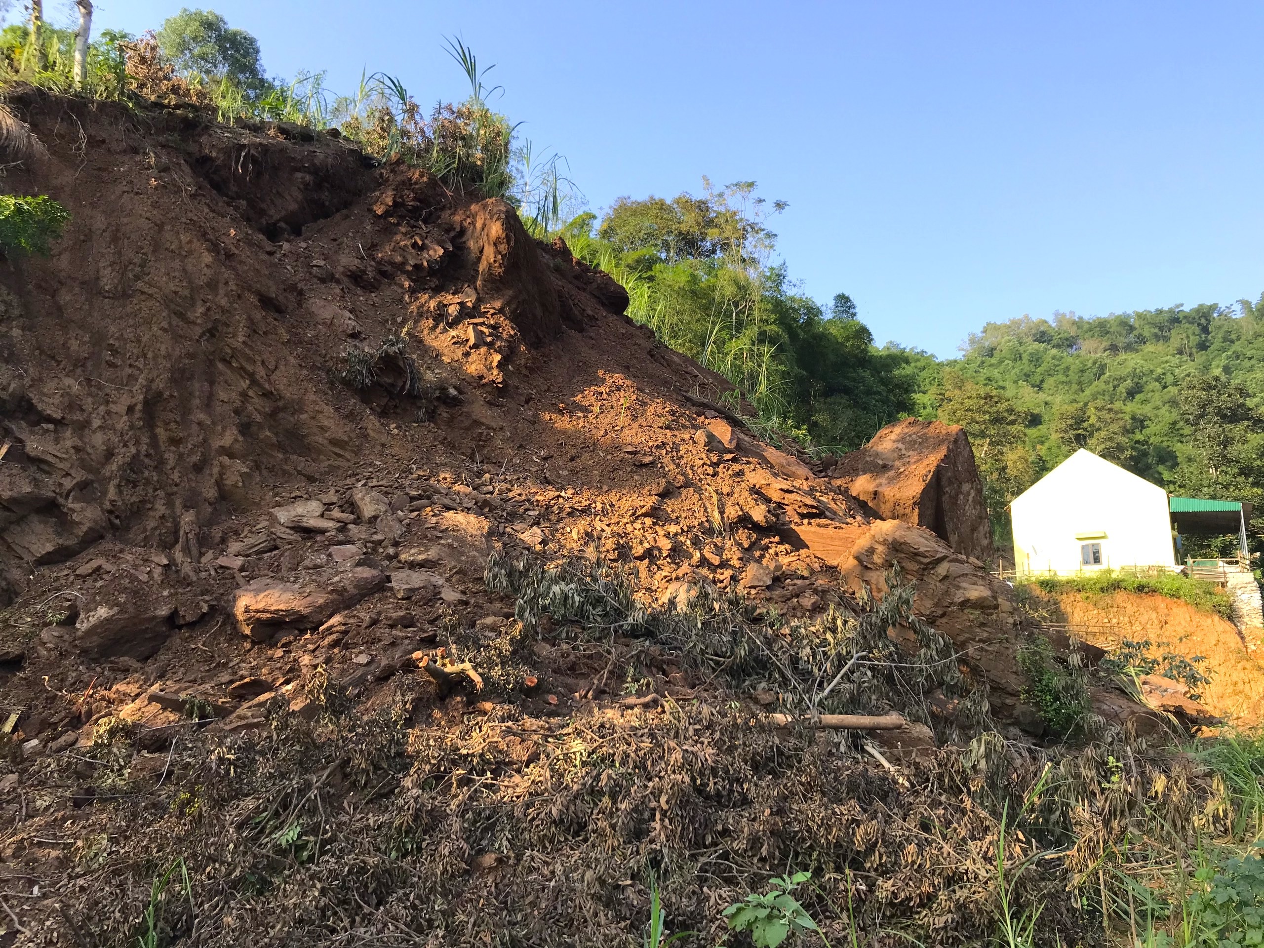 Sau đợt mưa lớn, ngọn núi ở bản Bủng Sát (Nghệ An) bất ngờ sụt lún sâu 2 m so với hiện trạng cũ, đe dọa cuộc sống hàng chục hộ dân.