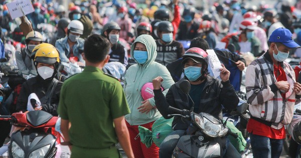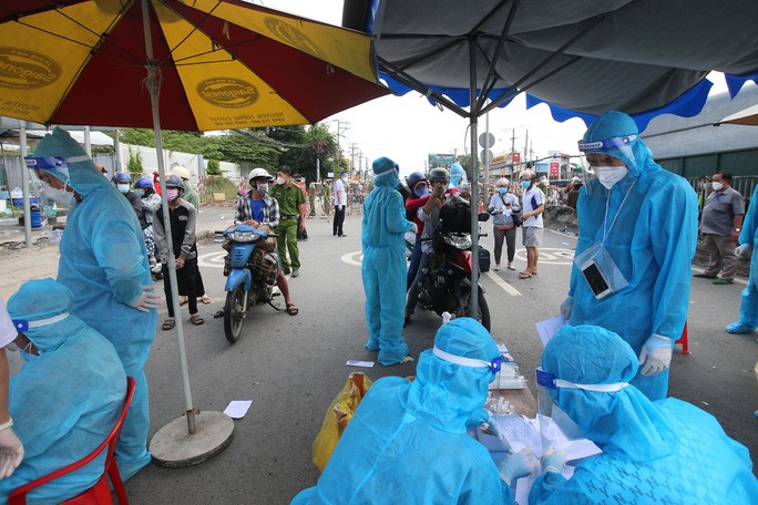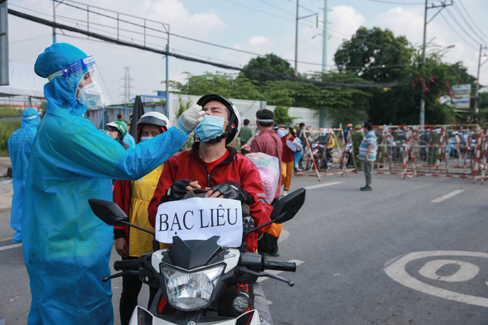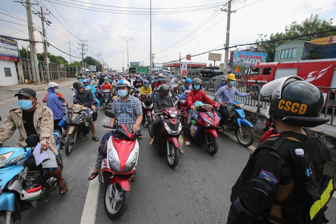 Hàng ngàn người đổ về miền Tây tập trung từ đêm 30-9 đến sáng nay, 1-10, tại chốt kiểm soát trên Quốc lộ 1 đoạn qua địa bàn thị trấn Tân Túc, huyện Bình Chánh, TP HCM.