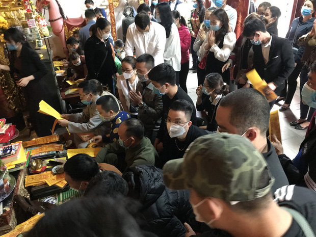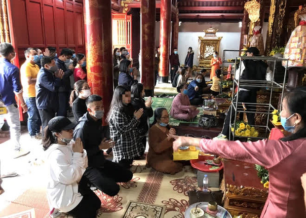 Đầu năm mới, có hàng nghìn lượt người đến đền ông Hoàng Mười thắp hương cầu khấn, nhưng nhiều người vẫn chủ quan không đeo khẩu trang chống dịch Covid-19.