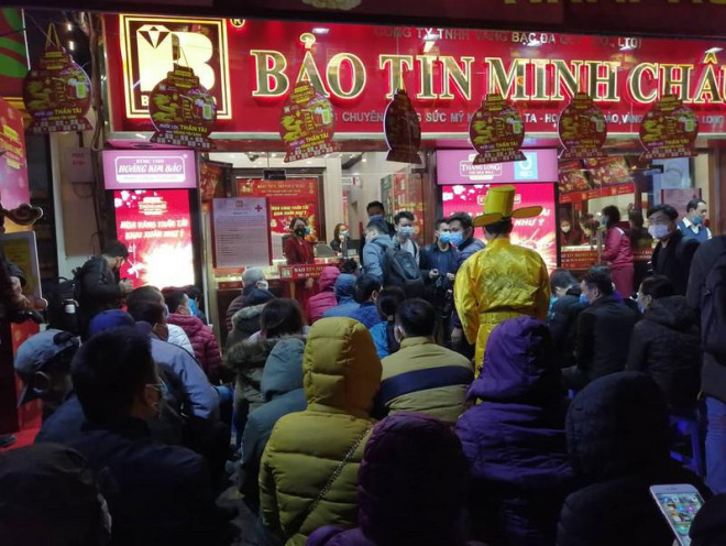 Ghi nhận tại cửa hàng vàng bạc Bảo tín Minh Châu số 29 Trần Thái Tông, dù lượng người có giảm so với năm trước, nhưng từ tờ mờ sáng, hàng chục “thượng đế” đã tới đây lấy số.