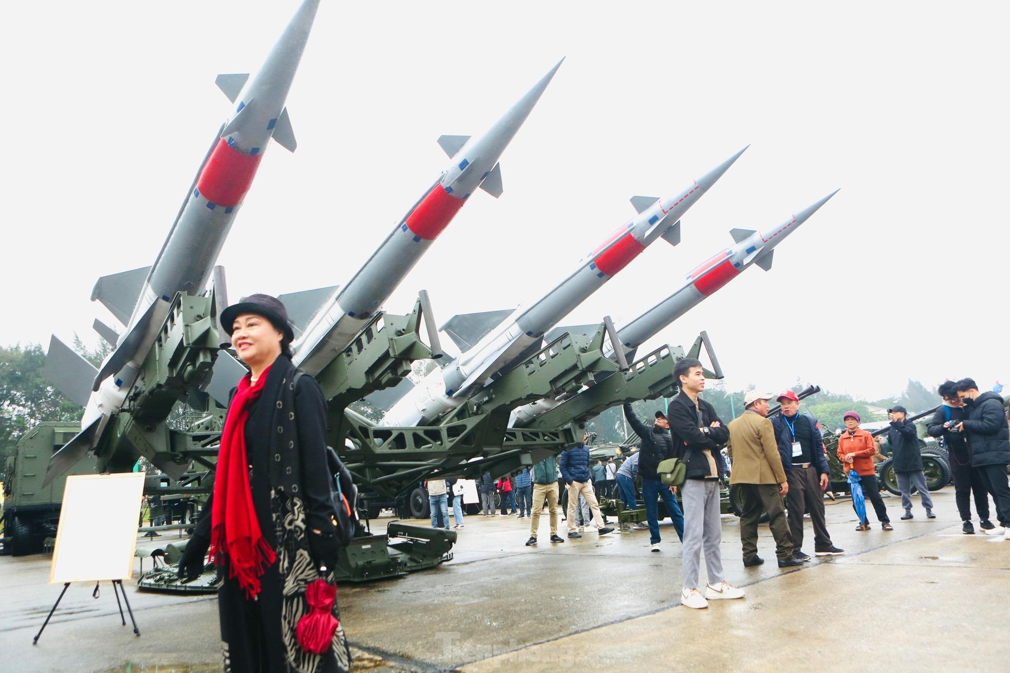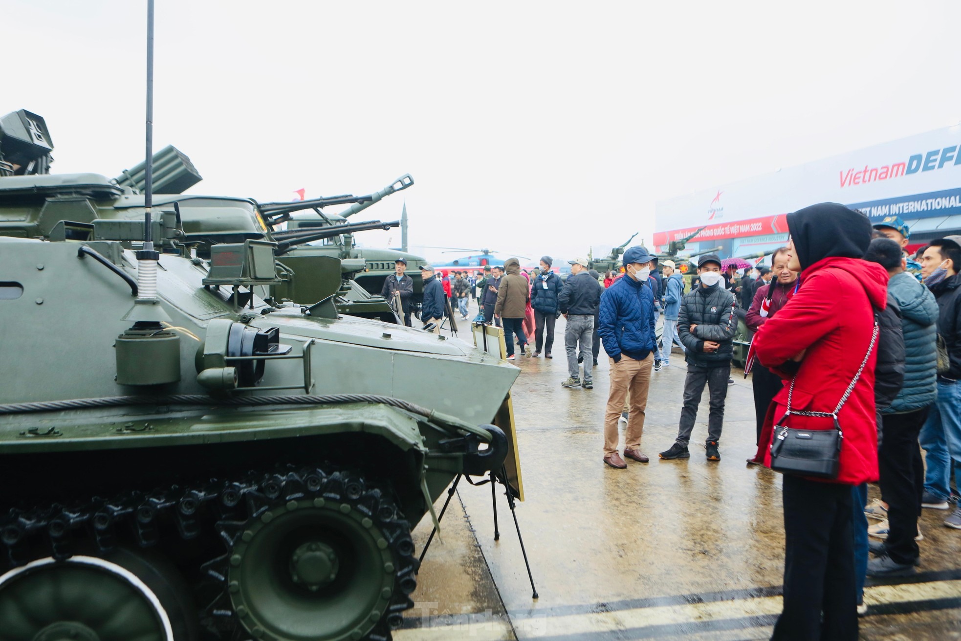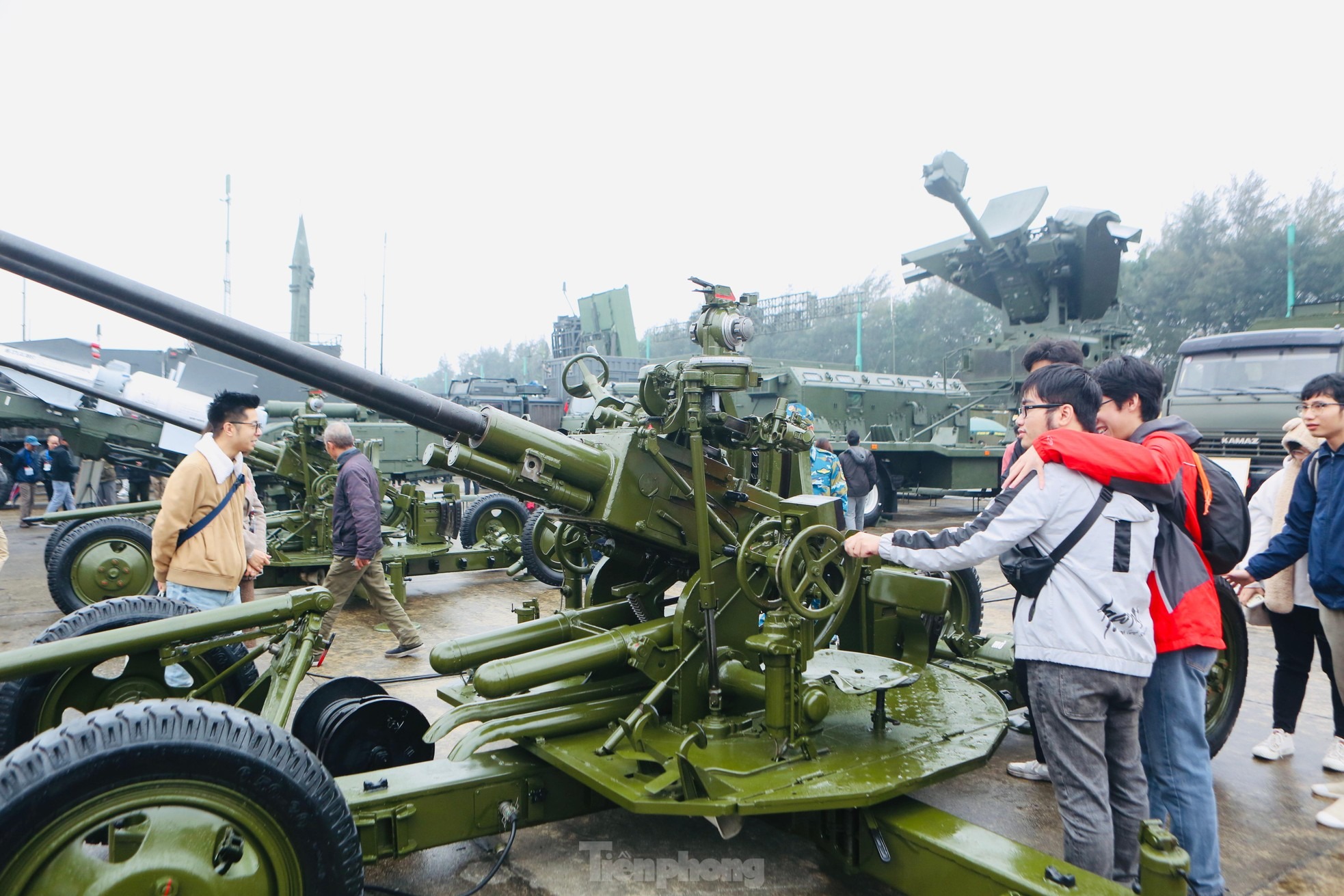 Ngày 10/12 bất chấp thời tiết giá lạnh kèm mưa phùn vẫn có rất đông khách đến tham quan trải nghiệm và chụp ảnh cùng các loại khí tài hiện đại.