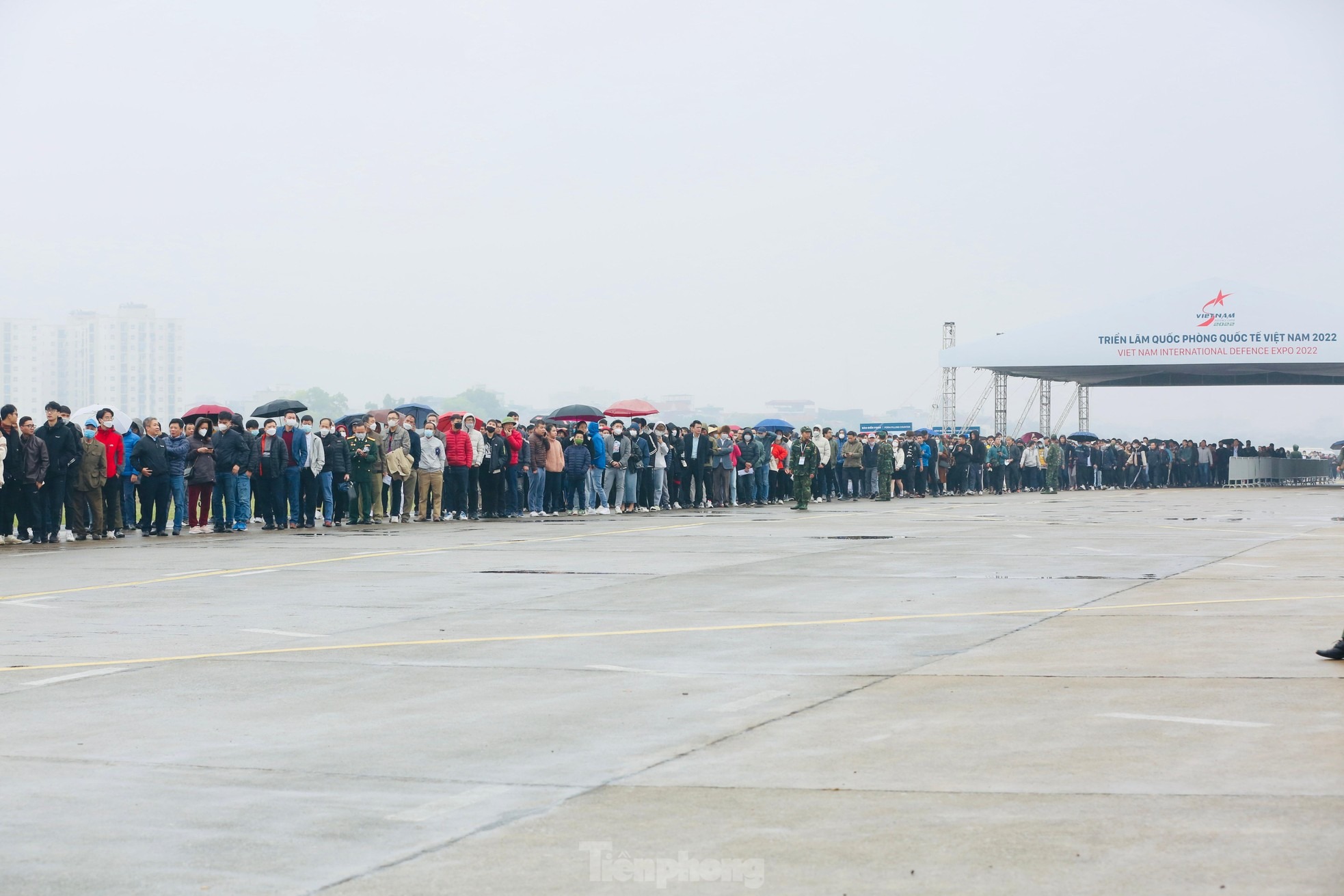 10/12, ngày cuối cùng Triển lãm Quốc phòng quốc tế Việt Nam mở cửa miễn phí đón khách tham quan, đông đúc người dân đã đội mưa có mặt xếp hàng từ sáng sớm trước cổng để chờ vào.