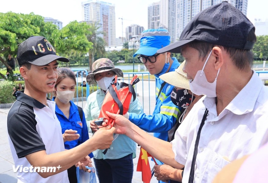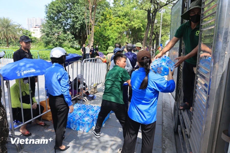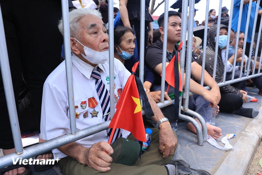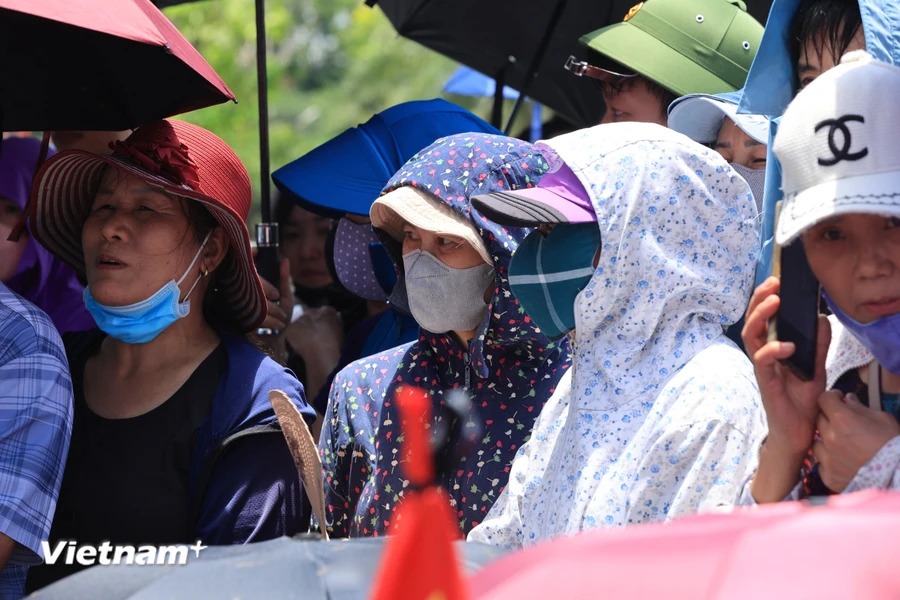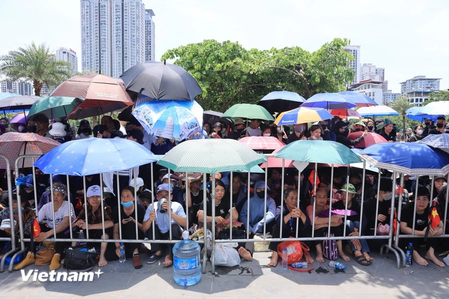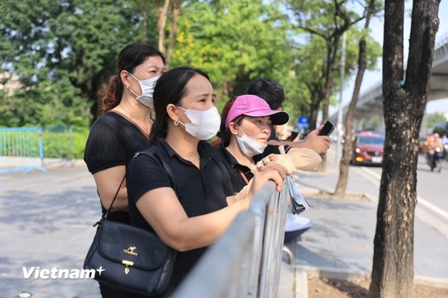 Dù trời nắng nóng, nhiều người dân đã có mặt tại khu vực Nghĩa trang Mai Dịch (Bắc Từ Liêm, Hà Nội) để mong được tiễn biệt Tổng Bí thư Nguyễn Phú Trọng lần cuối.