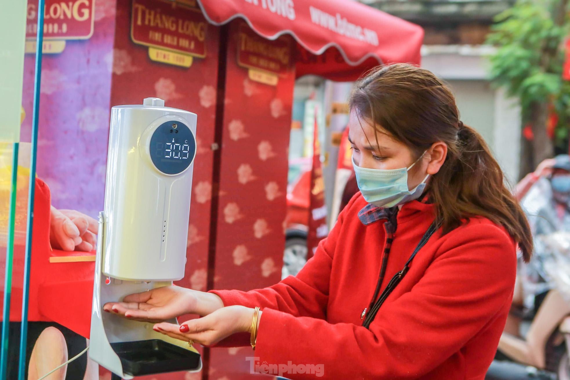 Khách hàng đều phải đeo khẩu trang, đo thân nhiệt và rửa tay sát khuẩn ngay ngoài cửa.