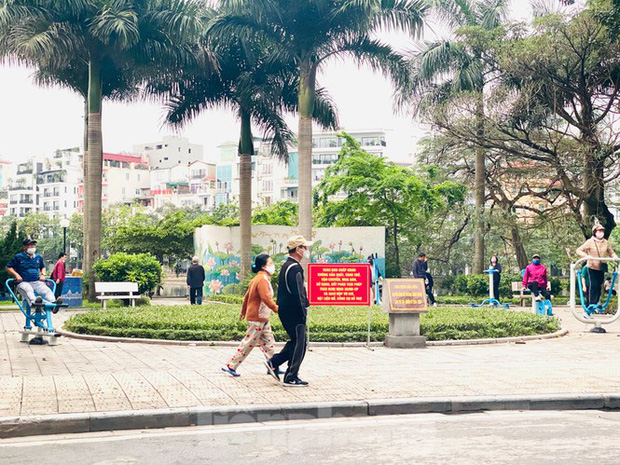 Chiều ngày 6/4, người dân Hà Nội vẫn đổ ra hồ Trúc Bạch và hồ Đầm, quận Ba Đình đi dạo và tập thể thao. Theo ghi nhận của phóng viên, không hề có lực lượng chức năng hoạt động nhắc nhở người dân tuân thủ quy định phòng chống dịch COVID -19.